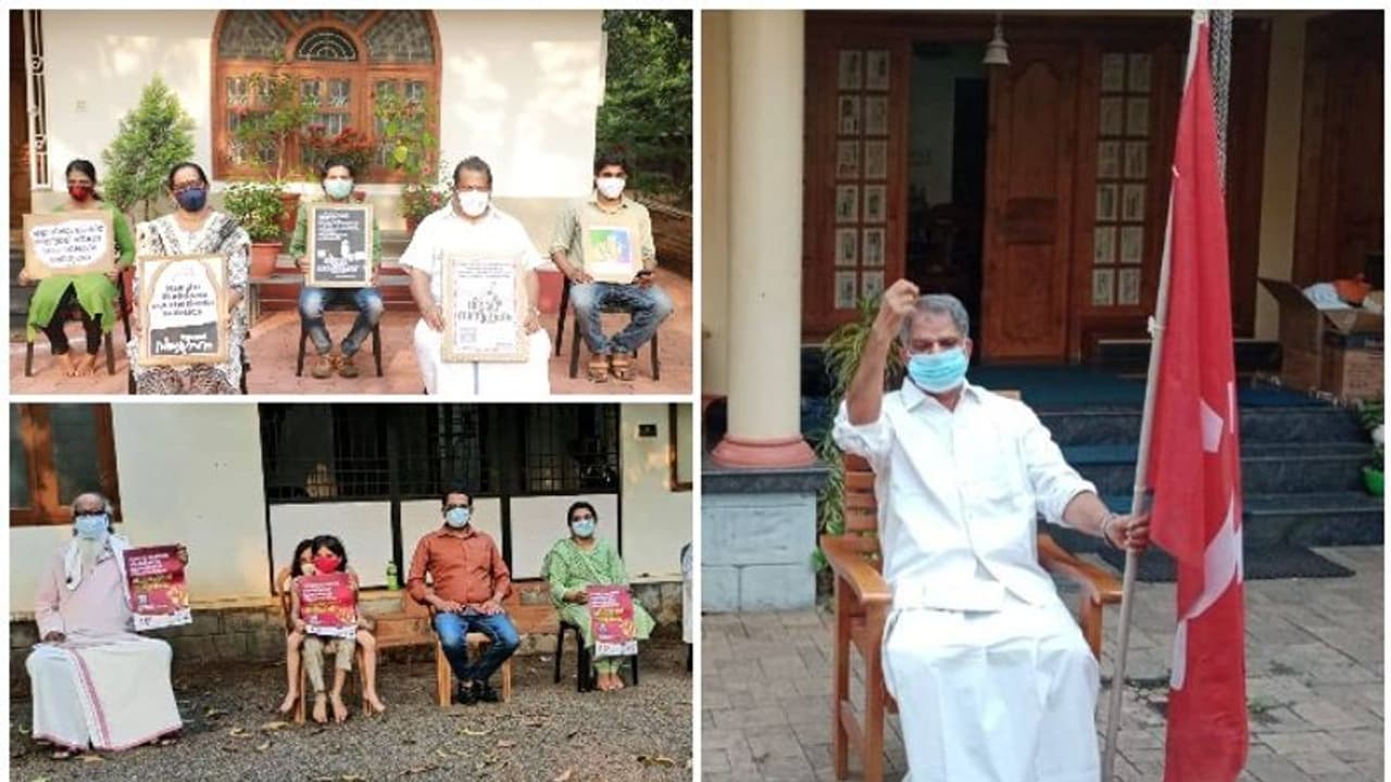 കൊവിഡ് പ്രോട്ടോക്കോൾ പാലിച്ച് വീട്ടുമുറ്റങ്ങളിലും പാർട്ടി ഓഫീസുകൾക്ക് മുന്നിലുമായിരുന്നു പ്രതിഷേധം.