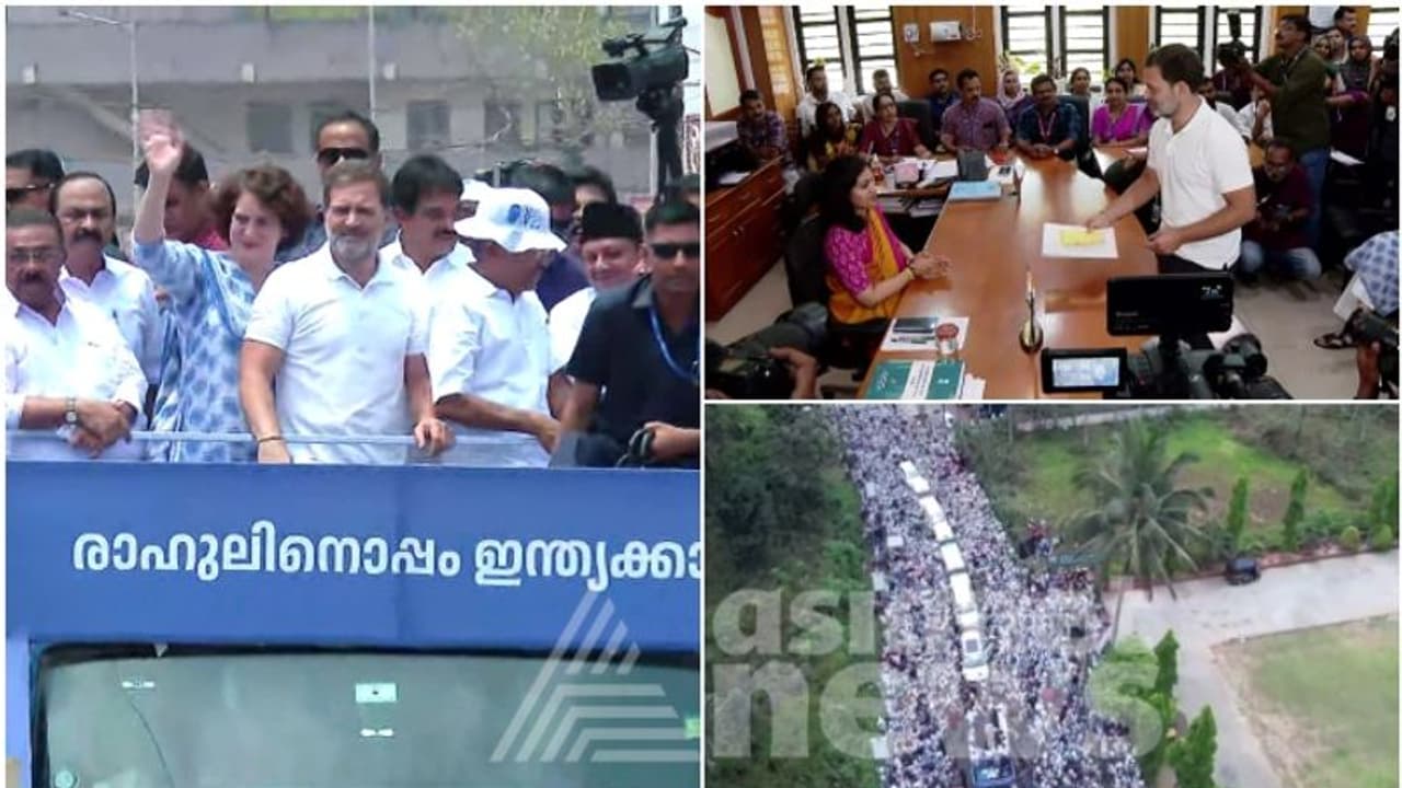 പിന്നീട് കളക്ടറയിലെത്തി രാഹുൽ പത്രിക സമര്പ്പിച്ചു. പ്രിയങ്ക ഗാന്ധിയും കൂടെയുണ്ടായിരുന്നു. ഇനി പതിനഞ്ചാം തീയതി ആയിരിക്കും രാഹുൽ മണ്ഡലത്തിൽ തിരിച്ചെത്തുക. അതിനുശേഷം ഏഴ് ദിവസം മണ്ഡലത്തിൽ രാഹുൽ സജീവമാകും. അതേസമയം, ഇടത് സ്ഥാനാർത്ഥി ആനി രാജയും നാമനിർദേശ പത്രിക സമര്പ്പിച്ചു. കൽപ്പറ്റ പുതിയ ബസ് സ്റ്റാൻഡിൽ നിന്നും റോഡ് ഷോയായാണ് പത്രിക നൽകാൻ ആനി രാജ കളക്ടറേറ്റിലെത്തിയത്. മുൻ എംഎൽഎ സി കെ ശശീന്ദ്രൻ, സന്തോഷ് കുമാർ എം പി, കെ കെ ഹംസ, കെ ജെ ദേവസ്യ എന്നീ നേതാക്കളും ആനി രാജയ്ക്കൊപ്പമുണ്ടായിരുന്നു.