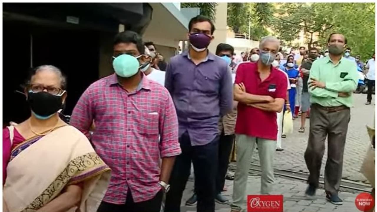 കൊച്ചി കലൂരിലെ സർക്കാർ കൊവിഡ് അപെക്സ് സെന്ററിനുമുന്നിലാണ് രാവിലെ വൻ തിരക്കനുഭവപ്പെട്ടത്. പ്രായവായവരടക്കം നൂറുകണക്കിനാളുകൾ വാക്സിൻ ടോക്കണായി ഊഴം കാത്തുനിൽക്കുകയായിരുന്നു. ഉണ്ടായിരുന്ന ടോക്കണുകളെല്ലാം പുലർച്ചെ മൂന്നരയ്ക്കുതന്നെ കൊടുത്തുതീർന്നെന്നാണ്ഇവരെ അറിയിച്ചിത്. എന്നിട്ടും മണിക്കൂറുകളുടെ കാത്തു നിൽപ്പ്. ഒടുവിൽ ഏഷ്യാനെറ്റ് ന്യൂസ് വാർത്ത പുറത്തുവന്നതോടെ ജില്ലാ ആരോഗ്യവിഭാഗം ഇടപട്ടു . 50 ടോക്കണുകൾ കൂടി നൽകാനും ശേഷിക്കുന്നവരുടെ ഫോൺ നമ്പർ ശേഖരിച്ച് അടുത്ത ദിവസം അറിയിക്കാനും നിർദേശം നൽകി.