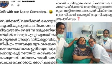 ആരോഗ്യമന്ത്രി വീണാ ജോർജിനെതിരെ കെഎസ്യു പ്രചാരണം. പരിയാരം ആശുപത്രിയിൽ നേഴ്സുമാർക്കൊപ്പം ഉള്ള ചിത്രമാണ് പ്രചരിപ്പിക്കുന്നത്.