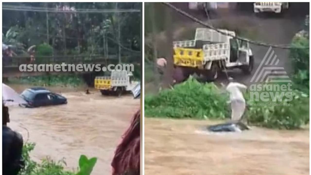 ഇടുക്കി വെള്ളിയാമറ്റത്തു നിന്നാണ് ഞെട്ടിപ്പിക്കുന്ന ദൃശ്യങ്ങൾ. ഒഴുക്കിൽ പെട്ട കാറിൽ നിന്ന് ഏറെ സാഹസികമായാണ് യാത്രക്കാരൻ രക്ഷപ്പെടുന്നത്.
