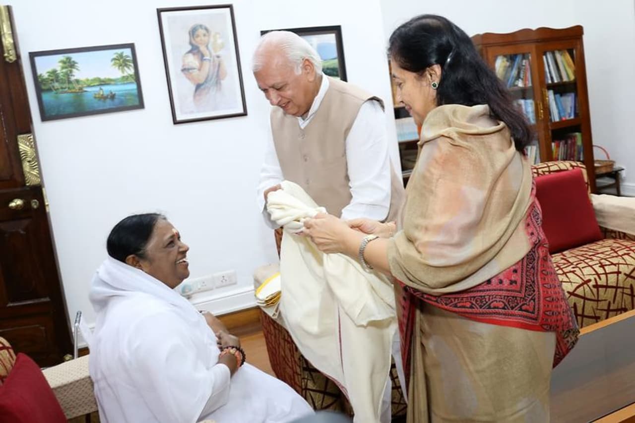 ഗവർണർ ആരിഫ് മുഹമ്മദ് ഖാന്റെ ഔദ്യോഗിക ട്വിറ്റർ അക്കൗണ്ട് വഴിയാണ് സന്ദർശന വിവരം പുറത്തുവിട്ടത്. മാതാ അമൃതാനന്ദമയിയെ ഗവർണറും ഭാര്യ രേഷ്മയും ചേർന്ന് പൊന്നാടയണിയിച്ചു