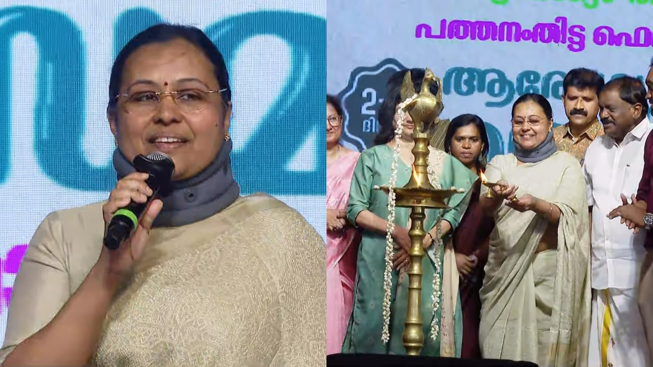 പത്തനംതിട്ട: കണ്ണൂർ സംഭവത്തിന് ശേഷം ആദ്യമായി പൊതുപരിപാടിയിൽ പങ്കെടുത്ത് ആരോഗ്യമന്ത്രി വീണ ജോർജ്. പത്തനംതിട്ടയിൽ തുടങ്ങിയ ആരോഗ്യ ആനന്ദം ഫെസ്റ്റ് മന്ത്രി ഉദ്ഘാടനം ചെയ്തു. കണ്ണൂർ റെയില്വേ സ്റ്റേഷനിലെ കെഎസ്യു പ്രതിഷേധത്തിനിടെ പരിക്കേറ്റതിന് പിന്നാലെ ആദ്യമായിട്ടാണ് വീണ ജോർജ് പൊതുപരിപാടിയിൽ പങ്കെടുക്കുന്നത്. ആരോഗ്യമേഖലയെ തകർക്കാൻ ആസൂത്രിതമായ ശ്രമം നടക്കുന്നുവെന്ന് മന്ത്രി ഉദ്ഘാടന പ്രസംഗത്തിനിടെ പ്രതികരിച്ചു. ആംബുലൻസ് ഡ്രൈവർമാർക്ക് സ്വകാര്യ ആശുപത്രികൾ കമ്മീഷൻ നൽകുന്നെന്ന മന്ത്രിയുടെ പ്രസ്താവന നേരത്തെ വിവാദമായിരുന്നു.