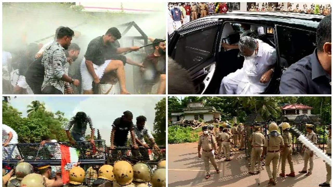 സ്വപ്ന സുരേഷ്, സ്വര്ണ്ണക്കടത്ത് കേസുമായി ബന്ധപ്പെട്ട് മുഖ്യമന്ത്രിക്കും കുടുംബത്തിനുമെതിരെ ആരോപണമുന്നയിച്ചതിന് പിന്നാലെ വലിയ പ്രതിഷേധമാണ് പ്രതിപക്ഷ സംഘടനകളുടെ നേതൃത്വത്തിൽ സംസ്ഥാനത്ത് നടക്കുന്നത്. ഈ സാഹചര്യത്തിൽ കഴിഞ്ഞ രണ്ട് ദിവസങ്ങളായി മുഖ്യമന്ത്രി പങ്കെടുക്കുന്ന പരിപാടികളിൽ അതീ സുരക്ഷാ വിന്യാസമാണ് പൊലീസ് ഉറപ്പ് വരുത്തുന്നത്. എന്നിരുന്നാലും യൂത്ത് കോൺഗ്രസ് യൂത്ത് ലീഗ്, യുവമോര്ച്ച പ്രവര്ത്തകര് പലയിടത്തും പ്രതിഷേധമുയര്ത്തി. പ്രതിഷേധത്തിന് സാധ്യതയുണ്ടെന്ന് മുന്നിൽ കണ്ട് പലയിടത്തും യൂത്ത് കോൺഗ്രസ് പ്രവർത്തകരെ പൊലീസ് കരുതൽ തടങ്കലിലാക്കി. മലപ്പുറത്ത് പൊതുജനങ്ങൾ ധരിച്ച കറുത്ത മാസ്ക്കുകൾ അഴിപ്പിച്ചു.