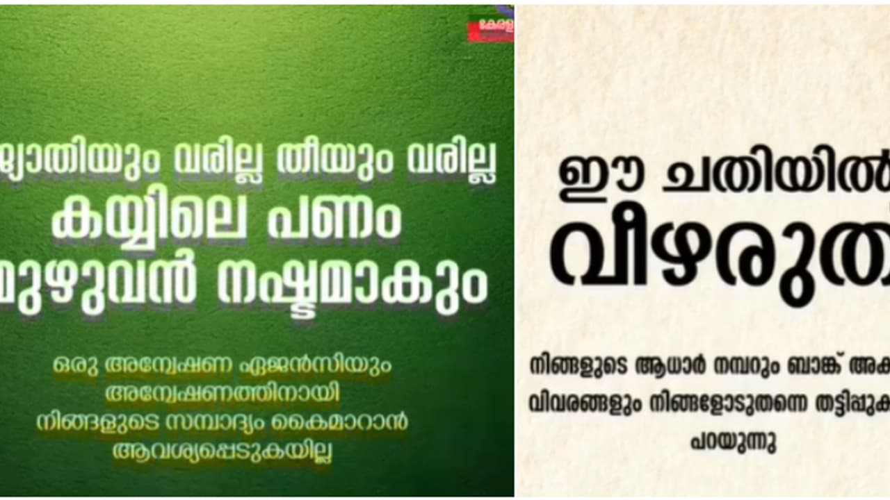 നിങ്ങളെ വെര്ച്വല് അറസ്റ്റ് ചെയ്തിരിക്കുകയാണെന്നും എങ്ങോട്ടും പോകരുതെന്നും തട്ടിപ്പുകാർ ആവശ്യപ്പെടുന്നു. ഭീഷണി വിശ്വസിച്ച് അവർ അയച്ചുനൽകുന്ന ബാങ്ക് അക്കൗണ്ടിലേയ്ക്ക് നിങ്ങൾ സമ്പാദ്യം മുഴുവൻ കൈമാറുന്നു. തുടർന്ന് ഇവരിൽനിന്ന് സന്ദേശങ്ങൾ ലഭിക്കാതിരിക്കുകയും ബന്ധപ്പെടാൻ കഴിയാതെ വരികയും ചെയ്യുന്നതോടെ മാത്രമേ തട്ടിപ്പ് മനസ്സിലാക്കാൻ സാധിക്കൂ എന്നാണ് പൊലീസ് മുന്നറിയിപ്പ്.