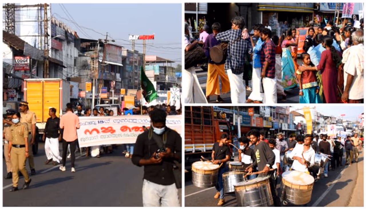 സുല്ത്താന്ബത്തേരി: ഇരുപത് വര്ഷങ്ങള്ക്ക് മുമ്പ് തങ്ങളുടെ അച്ഛനമ്മമാരും മുത്തച്ഛന്മാരും സഹോദരങ്ങളുമൊക്കെ ഒരു വിഭാഗം നാട്ടുകാരാലും പൊലീസിനാലും വേട്ടയാടപ്പെട്ട അതേ നഗരത്തില് മുഖം മുഴുക്കെ ചായമണിഞ്ഞും പരമ്പരാഗത വേഷം ധരിച്ചും രാഷ്ട്രീയ നിലപാടുകള് പറയുന്ന പ്ലക്കാര്ഡുകളേന്തി അവരെത്തിയത് ശക്തമായ രാഷ്ട്രീയ നിലപാടുകള് പറഞ്ഞു കൊണ്ടായിരുന്നു. വര്ഷങ്ങള്ക്കുമുന്പ് നടന്ന മുത്തങ്ങ സമരത്തെ തുടര്ന്നാണ് ഗോത്രജനത പൊലീസിനാലും പൊതുസമൂഹത്താലും വ്യാപകമായി ആക്രമിക്കപ്പെട്ടത്. അന്ന് നേരിട്ട യാതനകള്ക്ക് രാഷ്ട്രീയനിലപാടിലൂടെ മറുപടി പറയുന്നതായി മുത്തങ്ങ സമരവാര്ഷികത്തിന്റെ ഭാഗമായി സംഘടിപ്പിക്കപ്പെട്ട 'നങ്ക തെറെ' (ഞങ്ങളുടെ ആഘോഷം) സാംസ്കാരിക ആഘോഷ പരിപാടി.
