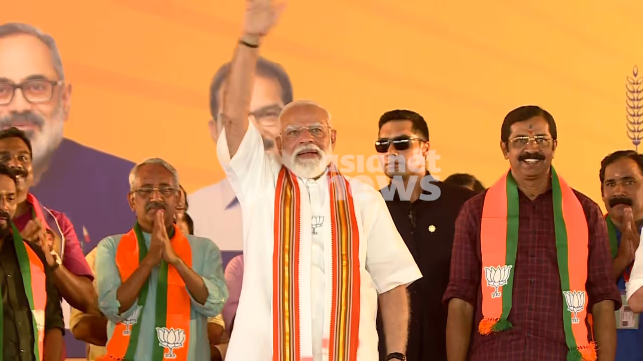 പാലക്കാട്: ബിജെപിയുടെ തെരഞ്ഞെടുപ്പ് പ്രചാരണത്തിന് ആക്കം കൂട്ടാൻ പ്രധാനമന്ത്രി നരേന്ദ്രമോദി ഇന്ന് കേരളത്തിലെത്തി. പാലക്കാടെത്തിയ മോദി കോട്ടമൈതാനത്തെ എൻഡിഎ തെരഞ്ഞെടുപ്പ് സമ്മേളനത്തിലാണ് ആദ്യം പങ്കെടുക്കുക. തുടര്ന്ന് തൃശൂരിലേക്ക് പോകും. വൈകിട്ട് തൃശൂരിൽ പ്രധാനമന്ത്രിയുടെ റോഡ് ഷോ നടക്കും. അതേസമയം, പൊതുസമ്മേളനം നടക്കുന്ന പാലക്കാട് കോട്ടമൈതാനത്തെ വേദിയില് സുരക്ഷ വീഴ്ച ഉണ്ടായി. വേദിയിലെ ആംപ്ലിഫയറിൽ നിന്ന് പുക ഉയർന്നു. ഉടന് ഉദ്യോഗസ്ഥരെത്തി പ്രശ്നം പരിഹരിച്ചു. ഓവർലോഡാണ് പുക ഉയരാന് കാരണമെന്ന് ഉദ്യോഗസ്ഥര് അറിയിച്ചു.