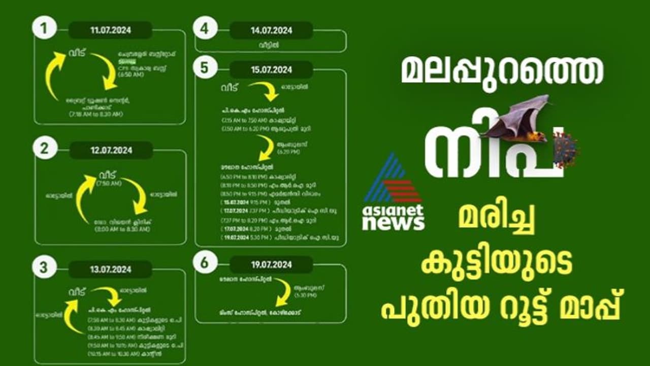 മലപ്പുറം:മലപ്പുറത്ത് നിപ സ്ഥിരീകരിച്ച് മരിച്ച കുട്ടിയുടെ വിശദമായ പുതിയ റൂട്ട് മാപ്പ് ആരോഗ്യവകുപ്പ് പുറത്തിറക്കി. പുതിയ റൂട്ട് മാപ്പില് പ്രതിപാദിച്ച സ്ഥലങ്ങളിൽ ഈ സമയങ്ങളിൽ ഉണ്ടായിരുന്നവർ ആരോഗ്യവകുപ്പിന്റെ നിപ കൺട്രോൾ റൂമിൽ വിവരമറിയിക്കണമെന്നും ആരോഗ്യ വകുപ്പ് നിർദേശിച്ചു. പാണ്ടിക്കാട് സ്വദേശിയായ 14കാരനാണ് നിപ സ്ഥിരീകരിച്ച് മരിച്ചത്. കുട്ടി ജൂലൈ 11 മുതല് 15വരെ പോയ സ്ഥലങ്ങളുടെ റൂട്ട് മാപ്പ് ആണ് നേരത്തെ പ്രസിദ്ധീകരിച്ചത്. ജൂലൈ 11 മുതല് ജൂലൈ 19വരെയുള്ള വിശദമായ റൂട്ട് മാപ്പ് ആണ് ഇപ്പോള് പുറത്തിറക്കിയത്. റൂട്ട് മാപ്പില് പറഞ്ഞിരിക്കുന്ന സ്ഥലങ്ങളില് ഈ സമയങ്ങളില് സന്ദര്ശിച്ചിട്ടുള്ളവര് നിര്ബന്ധമായും അധികൃതരെ ബന്ധപ്പെടണമെന്നാണ് നിര്ദേശം.