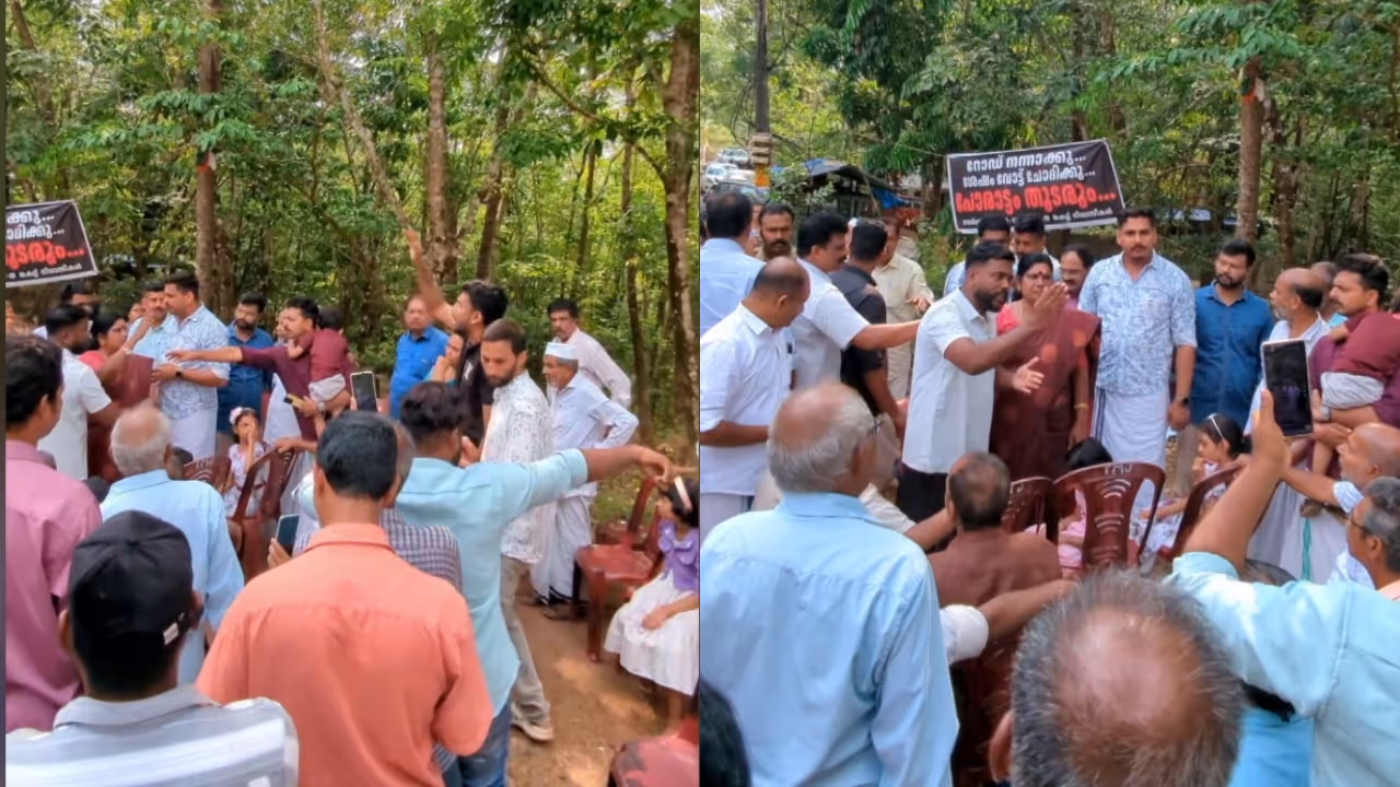 കൊല്ലം നിലമേൽ തങ്കക്കല്ലിൽ എൽഡിഎഫ് സ്ഥാനാർത്ഥി ജെ.ചിഞ്ചുറാണിക്ക് മുന്നിൽ പ്രതിഷേധിച്ച് നാട്ടുകാർ. പൊളിഞ്ഞ റോഡിൻ്റെ പണി വൈകുന്നതിനെതിരെ ആയിരുന്നു പ്രതിഷേധം.