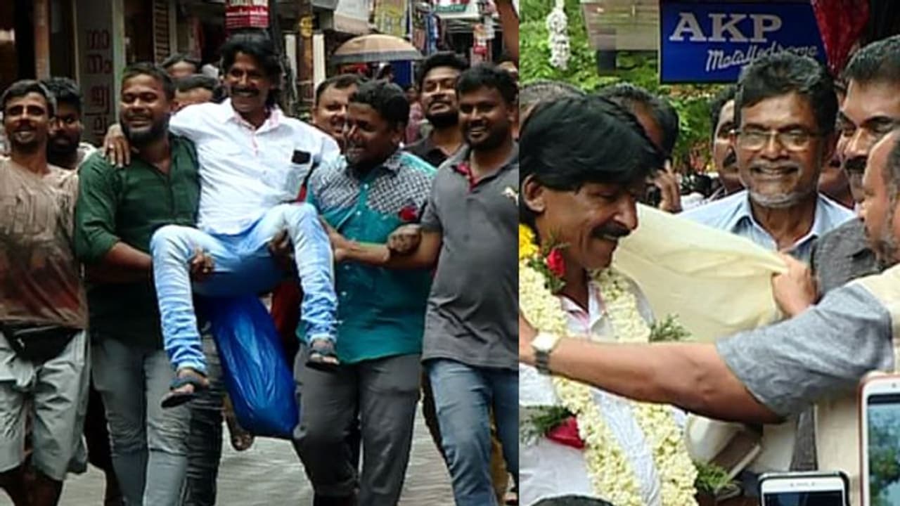 കൊച്ചി: കേരളത്തിലെ ദുരിതാശ്വാസ പ്രവർത്തനങ്ങളുടെ തന്നെ മുഖമായി മാറിയ എറണാകുളം മാലിപ്പുറം സ്വദേശി നൗഷാദിന് ആഹ്ലാദ നിർഭരമായ സ്വീകരണമൊരുക്കി സുഹൃത്തുക്കൾ. വഴിയോരക്കച്ചവടക്കാരനായ നൗഷാദിന് കൊച്ചി ബ്രോഡ്വേ മാർക്കറ്റിലെ സുഹൃത്തുക്കൾ ചേർന്നാണ് സ്വീകരണം ഒരുക്കിയത്.