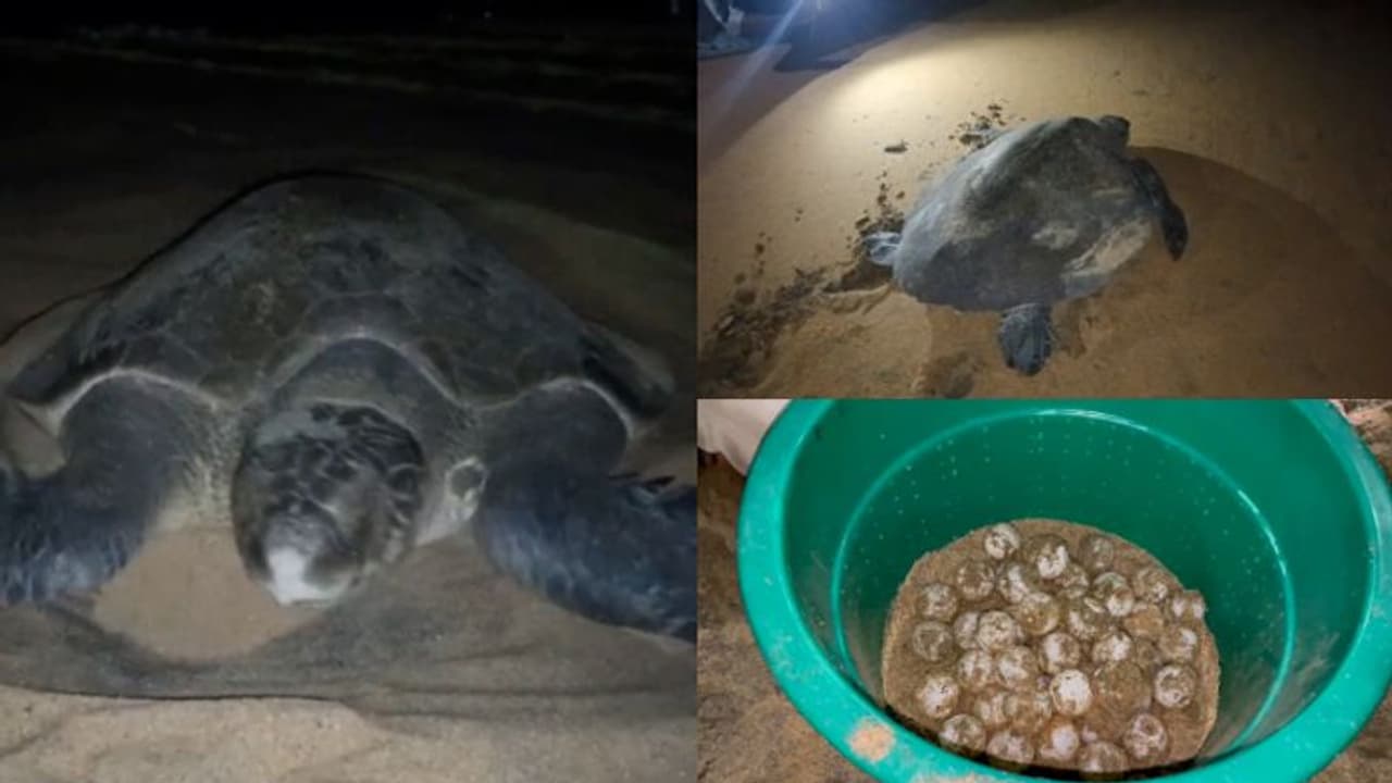 കടലിന്റെ ആവാസ വ്യവസ്ഥയിൽ പ്രധാന പങ്ക് വഹിക്കുന്ന ഒലിവ് റിഡ്ലി ഇനത്തിലെ ആമയാണ് ബീച്ചിന്റെ ഒത്ത നടുക്ക് മുട്ടയിട്ട് മടങ്ങിയത്.