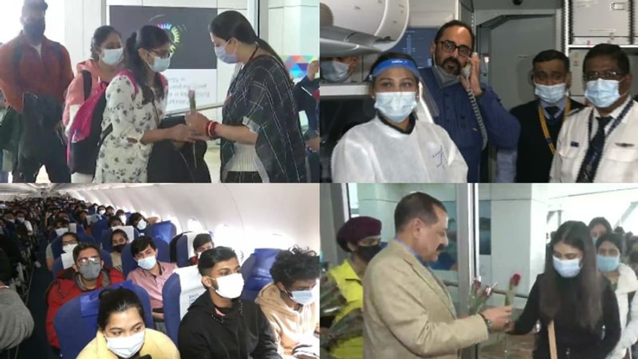 - ഇന്ന് രാവിലെ മുതൽ മൂന്ന് വിമാനങ്ങളാണ് യുക്രൈനിൽ നിന്നും വിദ്യാർത്ഥികളുമായി എത്തിയത്. എഴുന്നൂറിൽ അധികം പേർ തിരിച്ചെത്തി. കേന്ദ്രമന്ത്രിമാരായ സ്മൃതി ഇറാനി, ജിതേന്ദർ സിംഗ്, രാജിവ് ചന്ദ്രശേഖർ എന്നിവർ വിദ്യാർത്ഥികളെ സ്വീകരിച്ചു