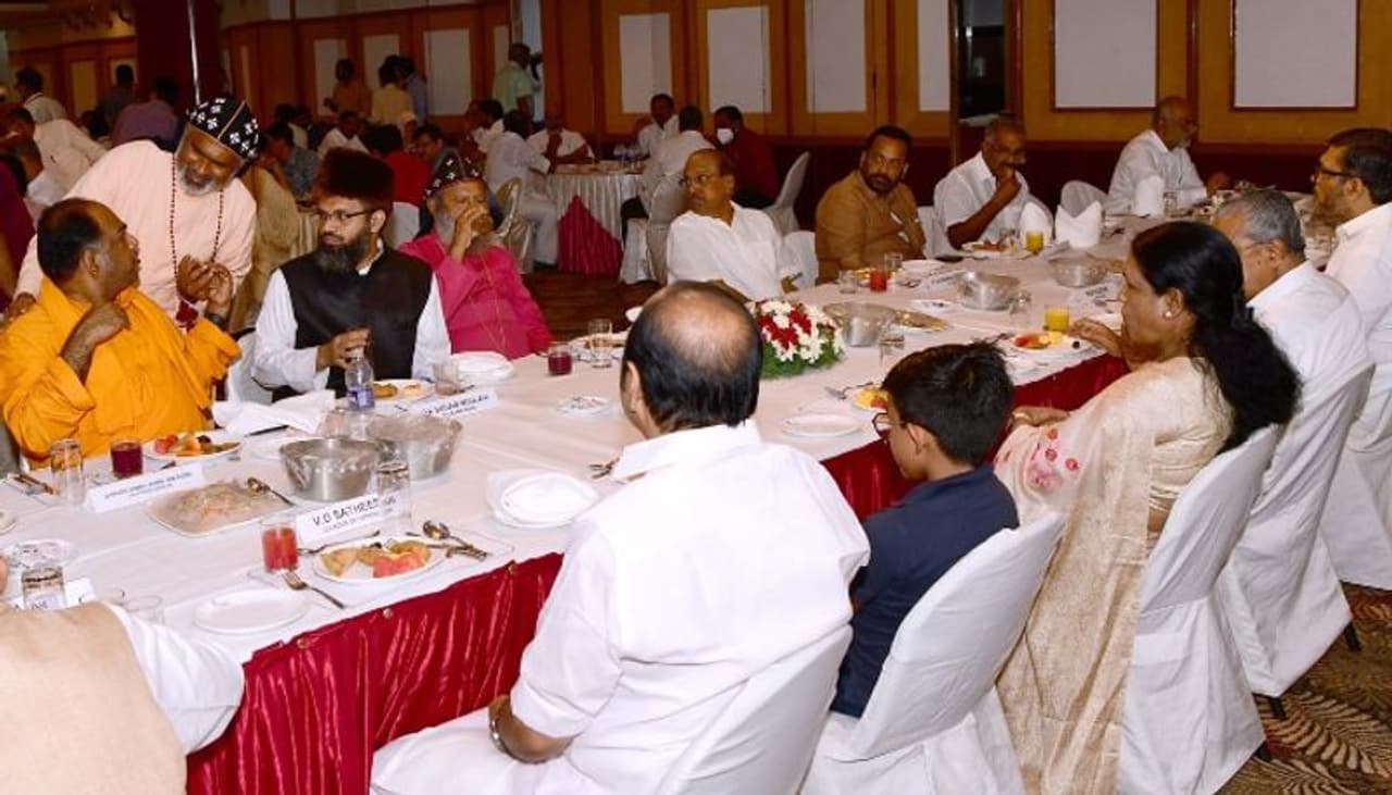തിരുവനന്തപുരം: മുഖ്യമന്ത്രി പിണറായി വിജയൻ സംഘടിപ്പിച്ച ഇഫ്താർ മീറ്റിൽ പ്രതിപക്ഷ നേതാവ് ഉൾപ്പെടെ സാമൂഹിക സാംസ്കാരിക മത രാഷ്ട്രീയ പ്രവർത്തകർ പങ്കെടുത്തു. മുഖ്യമന്ത്രിയും ഭാര്യ കമലയും ചേർന്നാണ് അതിഥികളെ സ്വീകരിച്ചത്.