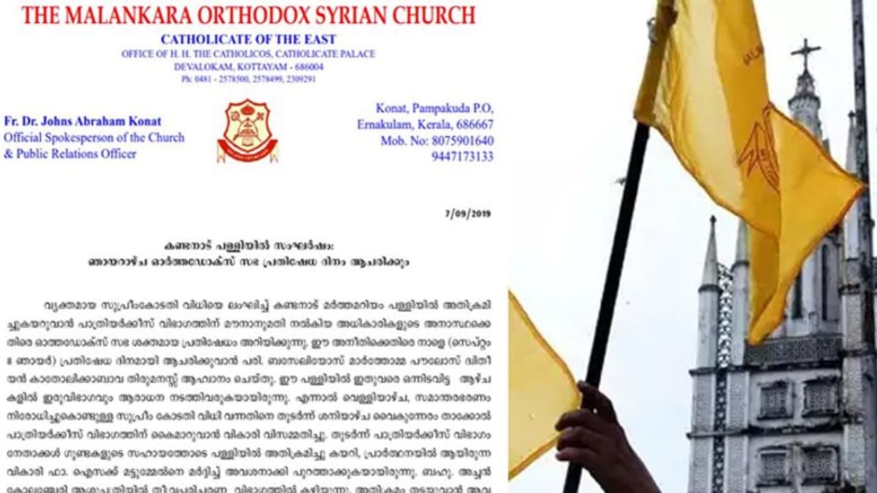 സുപ്രീംകോടതി വിധി മറികടന്ന് യാക്കോബായ വിഭാഗത്തിന് പള്ളിയിൽ കയറാൻ അധികാരികൾ മൗനാനുവാദം നൽകിയെന്ന് ഓർത്തഡോക്സ് സഭ