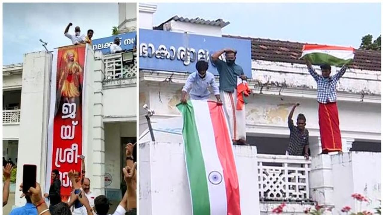 ഇതിനിടെ യൂത്ത് കോൺഗ്രസ് പ്രവർത്തകരും പ്രതിഷേധവുമായി പാലക്കാട് മുൻസിപ്പാലിറ്റിക്ക് മുന്നിലെത്തി. ബിജെപി പ്രവർത്തകർക്ക് നൽകാനായി ഭരണഘടനയുടെ കോപ്പികളുമായാണ് ഇവരെത്തിയത്. മുൻസിപ്പാലിറ്റി ഓഫീസിന് മുന്നിൽ വച്ച് ഇവരെ പൊലീസ് അറസ്റ്റ് ചെയ്ത് നീക്കി.