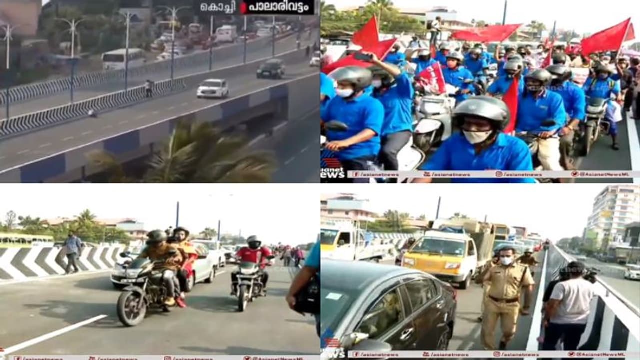 സുധാകരനും സംഘവും പാലം കടന്നു പോയതിന് പിന്നാലെ സിപിഎം പ്രവർത്തകർ ബൈക്ക് റാലിയുമായി പാലത്തിൽ പ്രവേശിച്ചു. പാലം പാലം സമയബന്ധിതമായി പൂർത്തിയാക്കിയ ഇടത് സർക്കാരിന് അഭിവാദ്യം അർപ്പിച്ച് സിപിഎം പ്രവർത്തകർ പാലത്തിലൂടെ പ്രകടനവും നടത്തി. ഇവർക്ക് പിന്നാലെ ഇ.ശ്രീധരന് അഭിവാദ്യം അർപ്പിച്ച് ബിജെപി പ്രവർത്തകരും പാലത്തിലൂടെ പ്രകടനം നടത്തി. ഡിഎംആർസി ഉദ്യോഗസ്ഥരും പാലം തുറന്നു കൊടുക്കുന്നതിന് സാക്ഷിയാവാൻ എത്തിയിരുന്നു.
