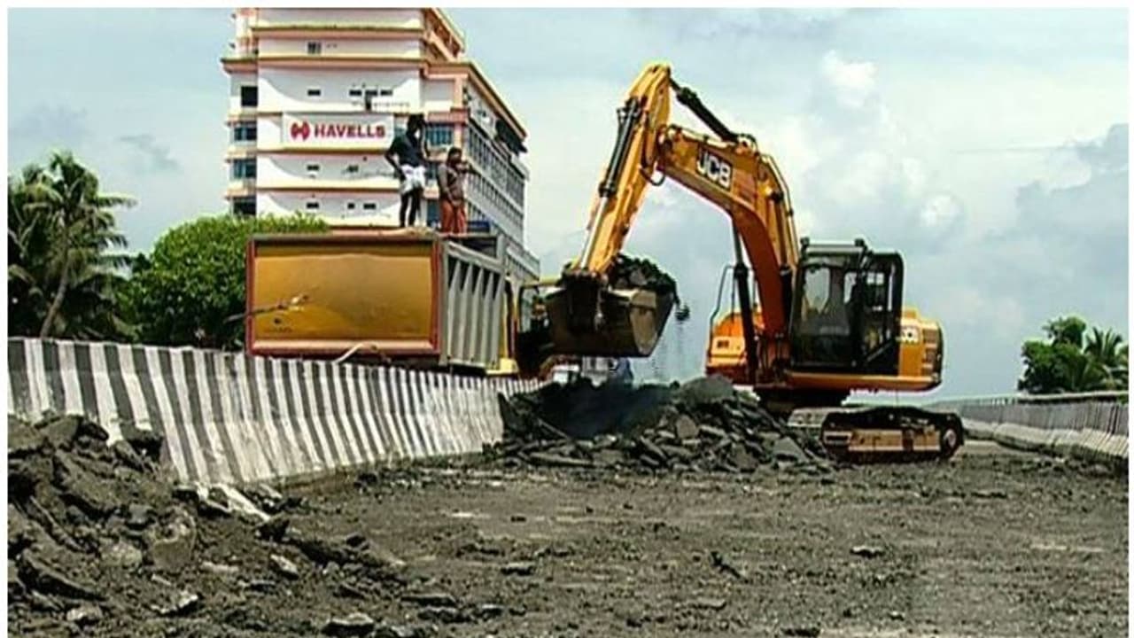 പാലത്തിനു മുകളിലെ ടാറിംഗ് ഇളക്കി മാറ്റുന്ന പണികൾ അവസാന ഘട്ടത്തിലെത്തിയതോടെയാണ് കോൺക്രീറ്റ് ഭാഗങ്ങൾ മുറിച്ചു മാറ്റാൻ തുടങ്ങിയത്. ഡിവൈഡറുകളാണ് ആദ്യം മുറിച്ചു മാറ്റുക.