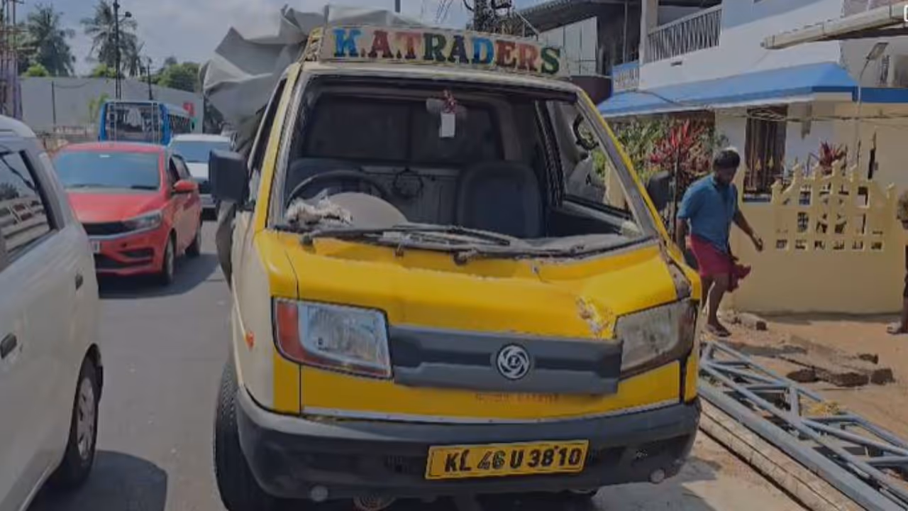 ചിറക്കൽ സ്വദേശി ലിനീഷ് ഓടിച്ചിരുന്ന മിനി ഗുഡ്സ് ലോറിയാണ് തകർന്നത്. മരത്തംകോട് പള്ളി പെരുന്നാളിന്റെ ഭാഗമായി വായനശാല ഫ്രണ്ട്സ് കമ്മിറ്റി സ്ഥാപിച്ച ലൈറ്റ് പന്തലാണ് ഉച്ചയ്ക്ക് കുന്നംകുളം വടക്കാഞ്ചേരി റോഡിലെ മരത്തംകോട് സെൻ്ററിൽ റോഡിലേക്ക് തകർന്നുവീണത്.