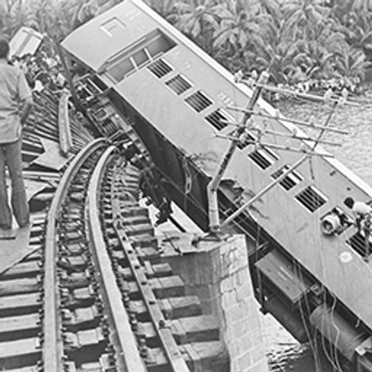 പതിനാലു കോച്ചുകൾ ഉണ്ടായിരുന്ന ആ തീവണ്ടി പാളം തെറ്റുമ്പോൾ, എഞ്ചിനും പാർസൽ വാനും ഒരു സെക്കൻഡ് ക്ലാസ് കമ്പാർട്ടുമെന്റും മാത്രമേ പാലം കടന്നിട്ടുണ്ടായിരുന്നുള്ളൂ. ഒൻപതു കോച്ചുകൾ ഒന്നിന് പിറകെ ഒന്നായി വെള്ളത്തിലേക്ക് കൂപ്പുകുത്തിയ ശേഷം, ഒരുവിധം തീവണ്ടി മുരണ്ടു മുരണ്ടു നിന്നപ്പോഴേക്കും, ഒരു ഫസ്റ്റ് ക്ളാസ് കമ്പാർട്ട്മെന്റ് പാലത്തിൽ നിന്ന് വെള്ളത്തിലേക്ക് മൂക്ക് കുത്തിയ മട്ടിൽ, ഒരറ്റം വെള്ളത്തിൽ മുങ്ങി തൂങ്ങിക്കിടന്നു.