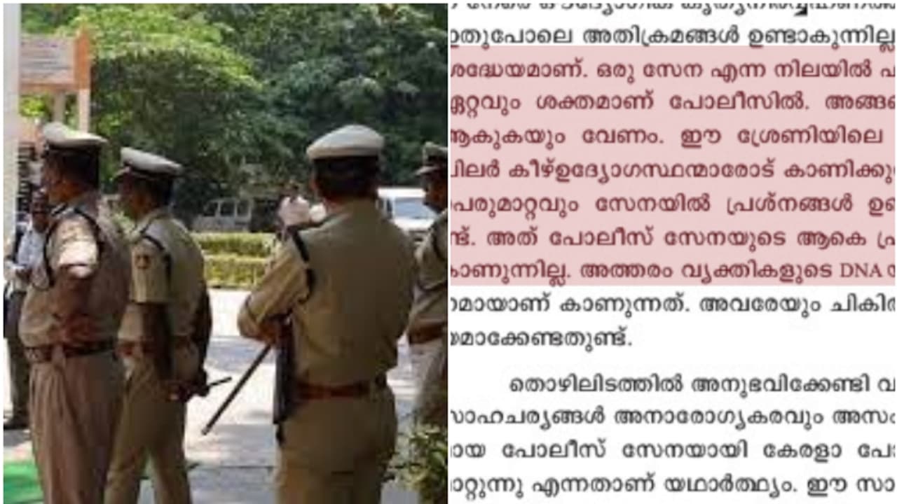 സ്വന്തം മേലുദ്യോഗസ്ഥനെ പോലും ബോധ്യപ്പെടുത്താൻ കഴിയാത്ത സാഹചര്യമാണുള്ളത്. വകുപ്പുതല അന്വേഷണ സമയത്ത് പൊലീസുദ്യോഗസ്ഥർ അനുഭവിക്കുന്നത് കടുത്ത മാനസിക പീഡനമാണ്. പല ജില്ലകളിലും പല രൂപത്തിലുള്ള ശിക്ഷണ നടപടിയാണ്. കോടിയേരിയുടെ പൈലറ്റ് വാഹനം അപകടത്തിൽപ്പെട്ട് മരിച്ച പ്രവീണിന് പത്തു ലക്ഷം മുഖ്യമന്ത്രിയുടെ ദുരിതാശ്വാസ നിധിയിൽ നിന്നും നൽകിയ വിവാദമാക്കിയത് വേദനാജനകമാണ്. ഇതേ തുടർന്ന് ജോലിക്കിടെ മരിച്ച ഏഴ് ഉദ്യോഗസ്ഥർക്കുള്ള ധനസഹായം ഇനിയും ലഭിച്ചിട്ടില്ല. വിഴിഞ്ഞത്തിന് പ്രത്യേക സബ് ഡിവിഷനും പൊലീസ് സ്റ്റേഷനും അനുവദിക്കണം. ജോലി ഭാരം കാരണം പൊലീസുകാർക്ക് കടുത്ത മാനസിക സമ്മർദ്ദമാണുള്ളത്. 56 വയസ് എത്തുന്നതിന് മുമ്പ് പലരും മരിക്കുന്നുവെന്നും കുടുംബത്തോടൊപ്പം കഴിയാൻ സമയം ലഭിക്കുന്നില്ലെന്നും റിപ്പോർട്ടിലുണ്ട്.