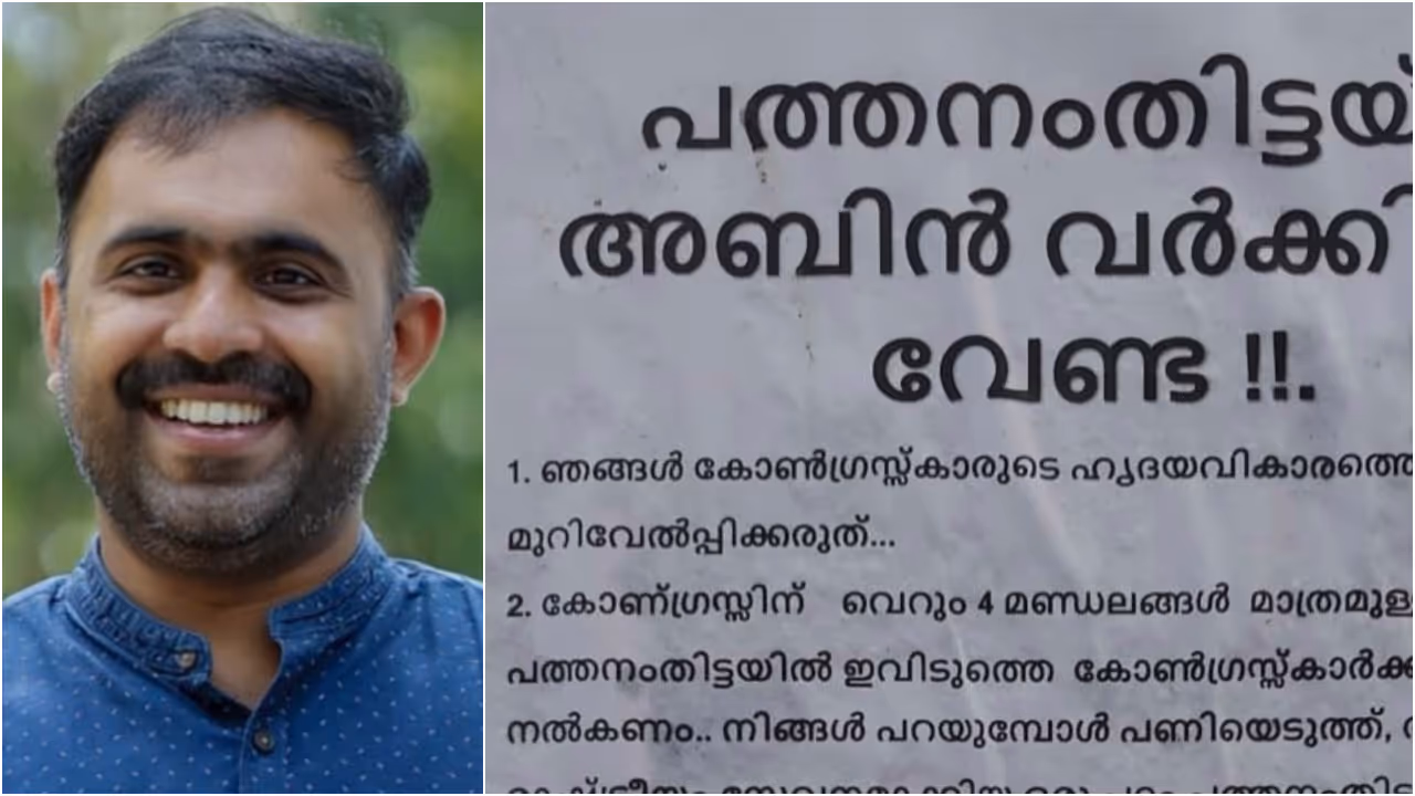 പത്തനംതിട്ട: അബിൻ വർക്കിക്കെതിരെ ആറന്മുള മണ്ഡലത്തിൽ ആകെ പോസ്റ്റർ. മണ്ഡലത്തിന്റെ വിവിധ ഇടങ്ങളിൽ പോസ്റ്ററുകൾ പതിച്ചു. ഡിസിസി ഓഫിസ്, പ്രസ് ക്ലബ് എന്നിവയുടെ സമീപത്തും പോസ്റ്ററുകൾ ഉയർന്നു. ഇതോടെ ആറന്മുളയിൽ സ്ഥാനാർഥി ആകാനുള്ള അബിൻ വർക്കിയുടെ നീക്കത്തിനു തിരിച്ചടിയായി. അബിൻ വർക്കിക്കെതിരെ കോൺഗ്രസിൽ പടയൊരുക്കം. സമീപ ദിവസങ്ങളിലായി അബിൻ വർക്കി ആറന്മുളയിൽ സജീവമായിരുന്നു. സ്ഥാനാർഥികളെ കെട്ടി ഇറക്കേണ്ടതില്ലെന്ന ഡിസിസി യോഗത്തിൽ നേരത്തെ അഭിപ്രായം ഉയർന്നിരുന്നു. ഇതേ ആവശ്യവുമായി ഒരു സംഘം നേതാക്കൾ ഇന്നലെ കെ.സി. വേണുഗോപലിനെ കണ്ടു. ആറന്മുള, ഓമല്ലൂർ, ചെന്നീർക്കര, ഇലന്തൂർ, കോഴഞ്ചേരി എന്നിവിടങ്ങളിലും പോസ്റ്ററുകൾ പ്രത്യക്ഷപ്പെട്ടു.