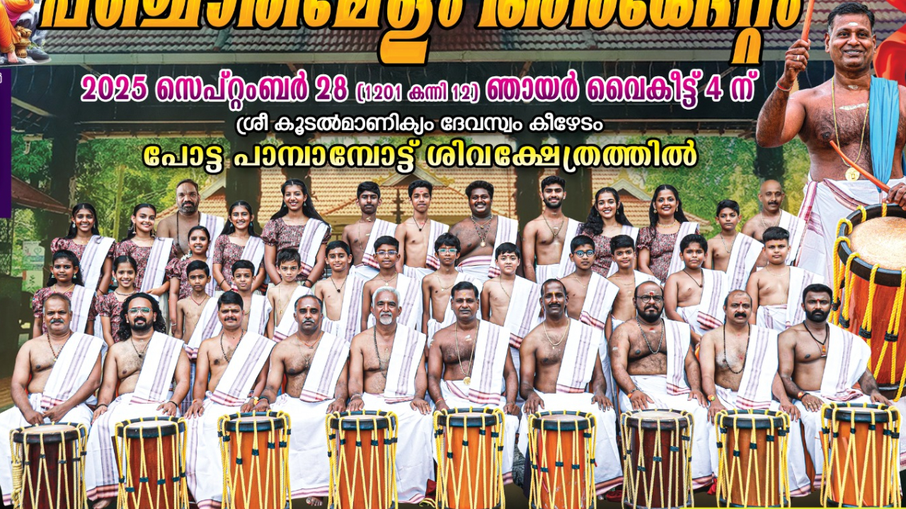 ചാലക്കുടി പോട്ടയിൽ ഗിരീഷ്-കാര്ത്തിക ദമ്പതികളും മകൻ ദേവർഷുവും ഒരുമിച്ച് പഞ്ചാരിമേളത്തിൽ അരങ്ങേറ്റം കുറിക്കുന്നു. നർത്തകിയായ ഭാര്യയും അക്കൗണ്ടൻ്റായ ഭർത്താവും മകനും ചേർന്നൊരുക്കുന്ന ഈ താളവിരുന്നിന് പോട്ട പാമ്പാമ്പോട്ട് ശിവക്ഷേത്രമാണ് വേദിയാകുന്നത്.