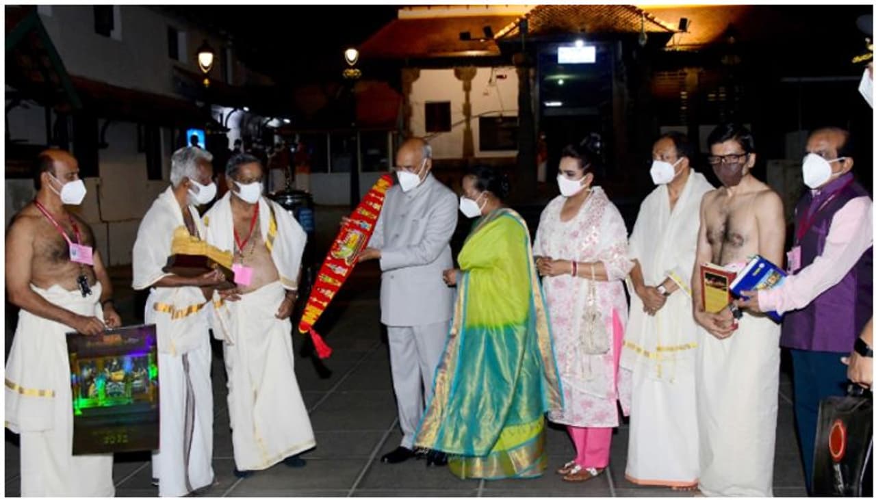തിരുവനന്തപുരം: രണ്ട് ദിവസത്തെ കേരള സന്ദർശനത്തിനെത്തിയ രാഷ്ട്രപതി ശ്രീപത്മനാഭസ്വാമി ക്ഷേത്രത്തിൽ ദർശനം നടത്തി. രാത്രിയോടെയാണ് രാംനാഥ് കോവിന്ദ് കുടുംബത്തോടൊപ്പം ശ്രീപത്മനാഭസ്വാമി ക്ഷേത്രത്തിൽ ദർശനം നടത്തിയത്. ക്ഷേത്രത്തിലെത്തിയ രാഷ്ട്രപതിയെ ഭാരവാഹികൾ ഊഷ്മളമായി സ്വീകരിച്ചു. ഉപഹാരവും സമ്മാനിച്ച ശേഷമാണ് അവർ രാഷ്ട്രപതിയെ യാത്രയാക്കിയത്. ഇന്നലെ കൊച്ചിയിലെത്തിയ രാംനാഥ് കോവിന്ദ് ഇന്ന് രാവിലെയാണ് തലസ്ഥാനത്തെത്തിയത്. ഗ്രന്ഥശാല പ്രസ്ഥാത്തിന്റെ ഉപജ്ഞാതാവ് പി എൻ പണിക്കറിന്റെ പ്രതിമ പൂജപ്പുരയിൽ അനാവരണം ചെയ്ത ശേഷമാണ് അദ്ദേഹം ക്ഷേത്രദർശനം നടത്തിയത്. ഇന്ന് രാജ്ഭവനിൽ തങ്ങുന്ന അദ്ദേഹം നാളെ രാവിലെ 10.20 ന് ദില്ലിക്ക് മടങ്ങും. രാഷ്ട്രപതിയുടെ സന്ദർശനം കണക്കിലെടുത്ത് തിരുവനന്തപുരം നഗരത്തിൽ ഗതാഗത നിയന്ത്രണം ഏര്പ്പെടുത്തിയിട്ടുണ്ട്.