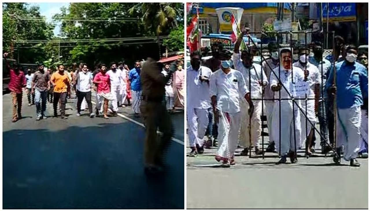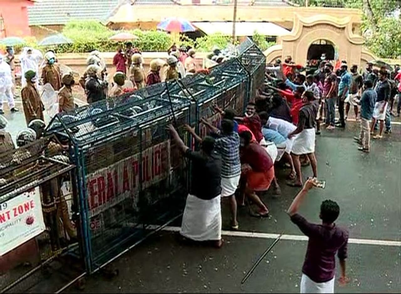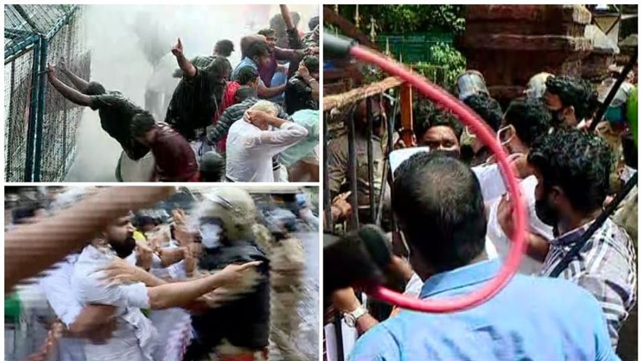 ബാരിക്കേട് മറി കടന്ന രണ്ട് യുവമോർച്ച പ്രവർത്തകരെ പൊലീസ് കസ്റ്റഡിയിലെടുത്തു. ബിജെപി സംസ്ഥാന വക്താവ് നാരായണൻ നമ്പൂതിരിക്ക് പരിക്കേറ്റു.