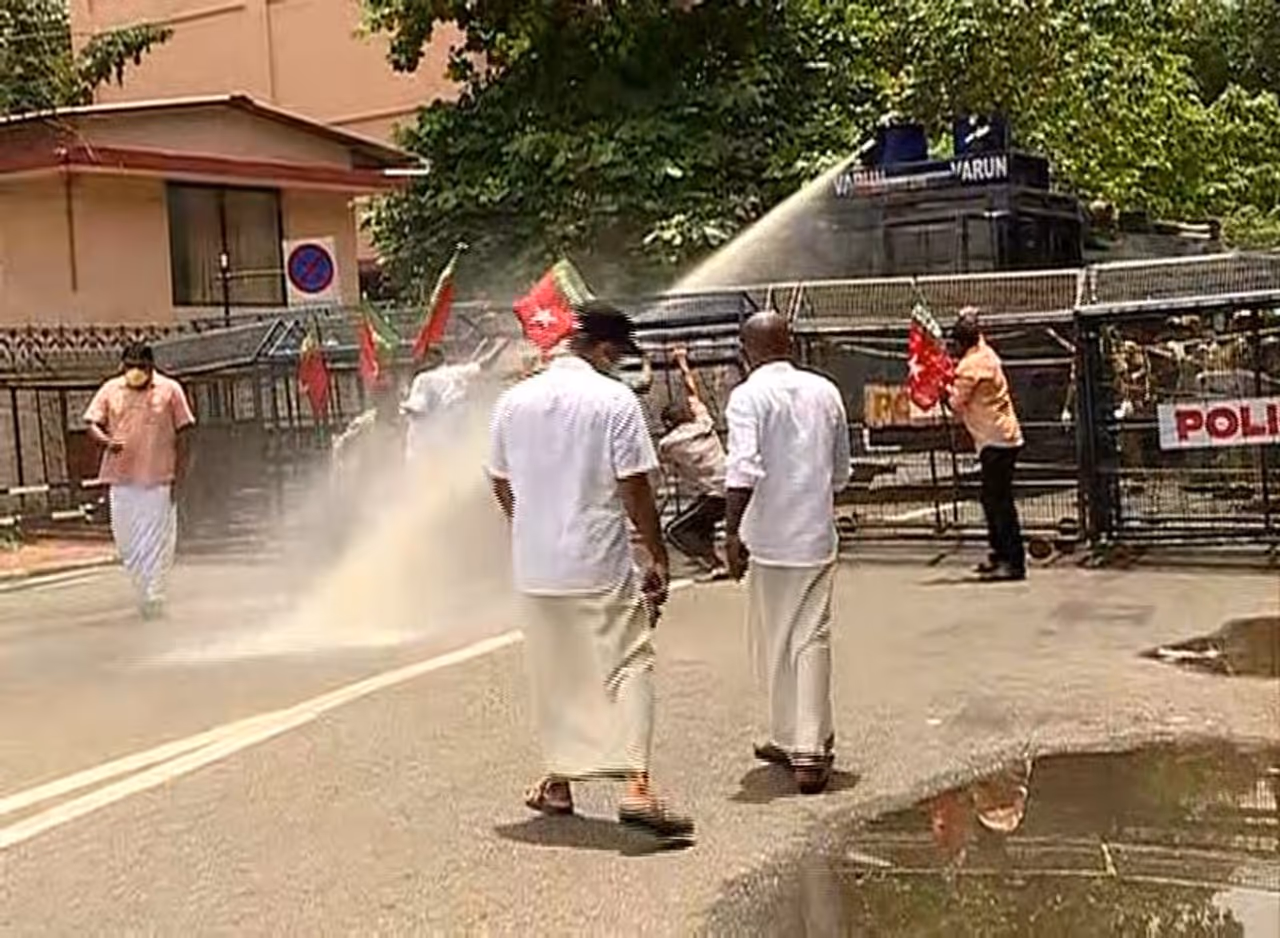 എസ്ഡിപിഐ പ്രതിഷേധത്തിന് നേരെ ജലപീരങ്കി പ്രയോഗം ഉണ്ടായി. യുവമോര്ച്ചാ പ്രവര്ത്തകരും ബിജെപി പ്രവര്ത്തകരും രണ്ട് വ്യത്യസ്ഥ പ്രകടനങ്ങളായാണ് സെക്രട്ടേറിയറ്റിനകത്ത് എത്തിയിരിക്കുന്നത്. ആദ്യമെത്തിയ യുവമോര്ച്ച മാര്ച്ചിന് നേരെ പൊലീസ് ജലപീരങ്കിയും കണ്ണീര്വാതക ഗ്രനേഡും പ്രയോഗിച്ചു.
