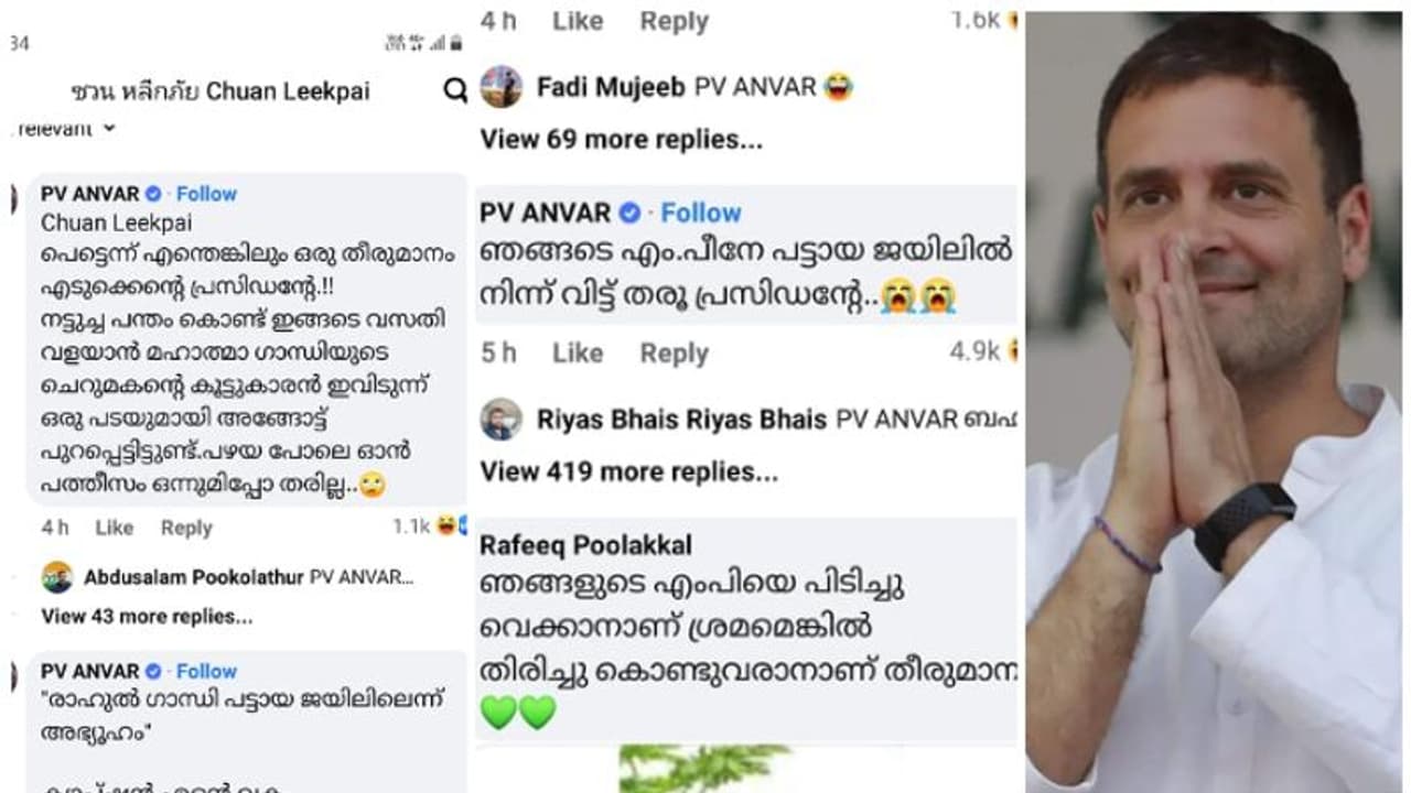 'ഞങ്ങടെ എംപീനേ പട്ടായ ജയിലിൽ നിന്ന് വിട്ട് തരൂ പ്രസിഡന്റേ' എന്നാണ് ഒരു കമന്റ്. പി വി അൻവറിന് പിന്നാലെ മലയാളത്തിലുള്ള നിരവധി കമന്റുകളാണ് ചുവാൻ ലീക്പൈയുടെ പേജിൽ വന്നിട്ടുള്ളത്.