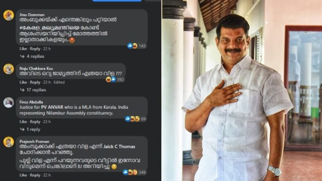 ജാപ്പാനിൽ നിന്ന് കാർമേഘമെത്തിക്കാനായി അൻവറിക്കയെ മോചിപ്പിക്കൂക, ഘാനച്ചേട്ടാ കനിയണം അമ്പർക്ക തല്ലുകൊള്ളി ആണേലും വിട്ടയക്കണം എന്നിങ്ങനെ പോകുന്നു മലയാളത്തിലുള്ള കമന്റുകൾ. മിക്ക പോസ്ററുകളും യുഡിഎഫ് പ്രവർത്തകരുടേതും അനുഭാവികളുടേതുമാണ്. പോസ്റ്റും ട്രോളും പെരുകിയതോടെ സാക്ഷാൽ അൻവർ തന്നെ ഫേസ്ബുക്ക് പോസ്റ്റിലൂടെ പ്രത്യക്ഷപ്പെട്ടു.