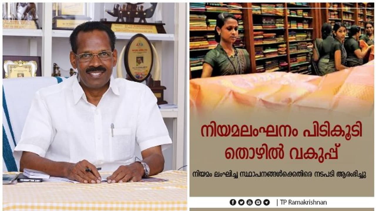 തിരുവനന്തപുരം: സംസ്ഥാനത്തെ തുണിക്കടകളില് ജീവനക്കാര്ക്ക് ഇരിപ്പിടം നല്കാത്ത 58 സ്ഥാപനങ്ങള്ക്കെതിരെ നടപടിയെടുക്കുമെന്ന് തൊഴില് മന്ത്രി ടിപി രാമകൃഷ്ണന്. കഴിഞ്ഞ ദിവസങ്ങളിൽ സംസ്ഥാനത്തുടനീളം തൊഴില് വകുപ്പ് വ്യാപകമായ പരിശോധന നടത്തിയിരുന്നു. പരിശോധനയുടെ അടിസ്ഥാനത്തിലാണ് നടപടി. 1960ലെ കേരള കടകളും വാണിജ്യ സ്ഥാപനങ്ങളും നിയമങ്ങളില് ഭേദഗതി വരുത്തി സര്ക്കാര് തൊഴില് ഇടങ്ങളില് സ്ത്രീകള്ക്ക് ഇരിപ്പിടം ഉറപ്പു വരുത്തുന്ന നിയമം പാസാക്കിയിരുന്നു.
