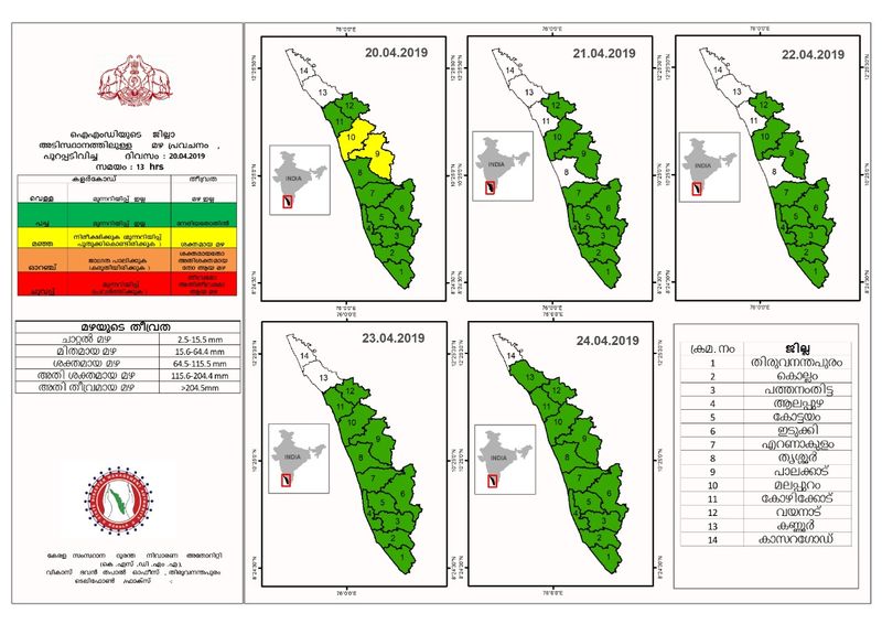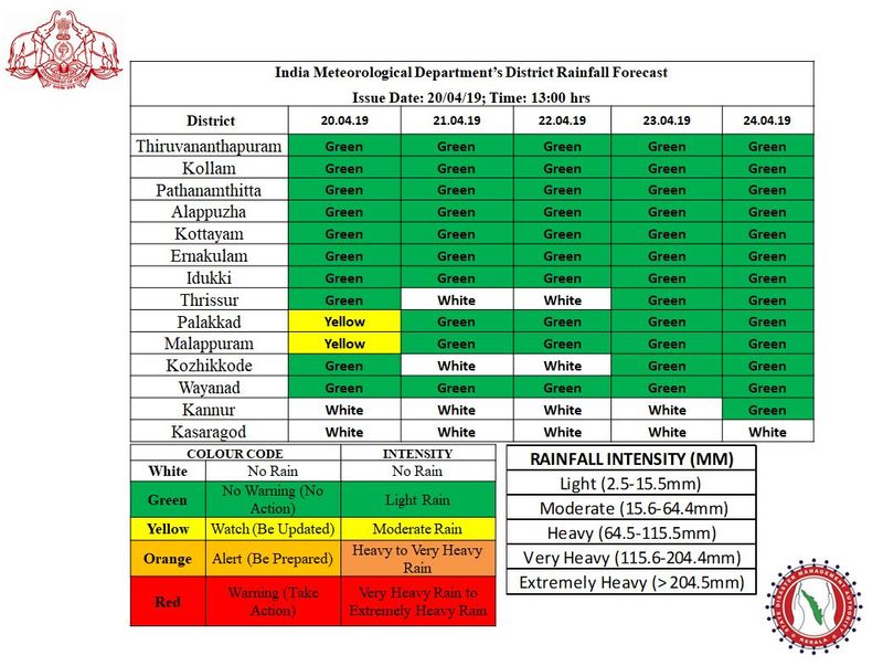 തൃശൂര്, കോഴിക്കോട് എന്നിവിടങ്ങളില് 21, 22 തിയതികളിലൊഴികെ നേരിയ തോതില് മഴ ലഭിക്കും. മഴയ്ക്കൊപ്പം ശക്തമായ ഇടിമിന്നലിലന് സാധ്യതയുണ്ടെന്ന് നേരത്തെ കാലാവസ്ഥാ വകുപ്പ് വ്യക്തമാക്കിയിരുന്നു.