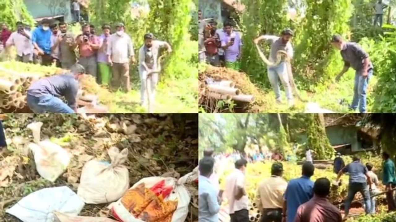 ആർ.ആർ.ടി വാളണ്ടിയർമാർ ഏഴു പാമ്പുകളേയും പിടികൂടി ചാക്കുകളിലാക്കി.