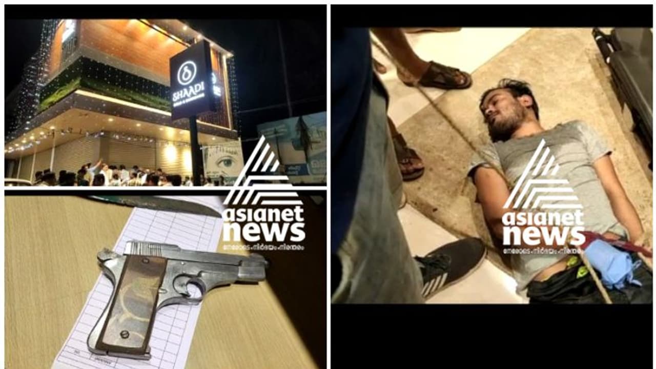 ഇയാളുടെ കൈയിലുണ്ടായിരുന്ന തോക്ക് ലോഡ് ചെയ്ത നിലയിലായിരുന്നു എന്ന് സ്ഥലത്ത് എത്തി പരിശോധന നടത്തിയ പൊലീസുദ്യോഗസ്ഥര് അറിയിച്ചു. കടയില് നിന്നും പതിനഞ്ചോളം സ്വര്ണവളകള് കവര്ച്ച ചെയ്യപ്പെട്ടിട്ടുണ്ട്. സ്വര്ണവുമായി കടന്നു കളഞ്ഞ മറ്റു രണ്ട് പേര്ക്കായി പൊലീസും നാട്ടുകാരും പ്രദേശത്ത് തെരച്ചില് നടത്തുകയാണ്.