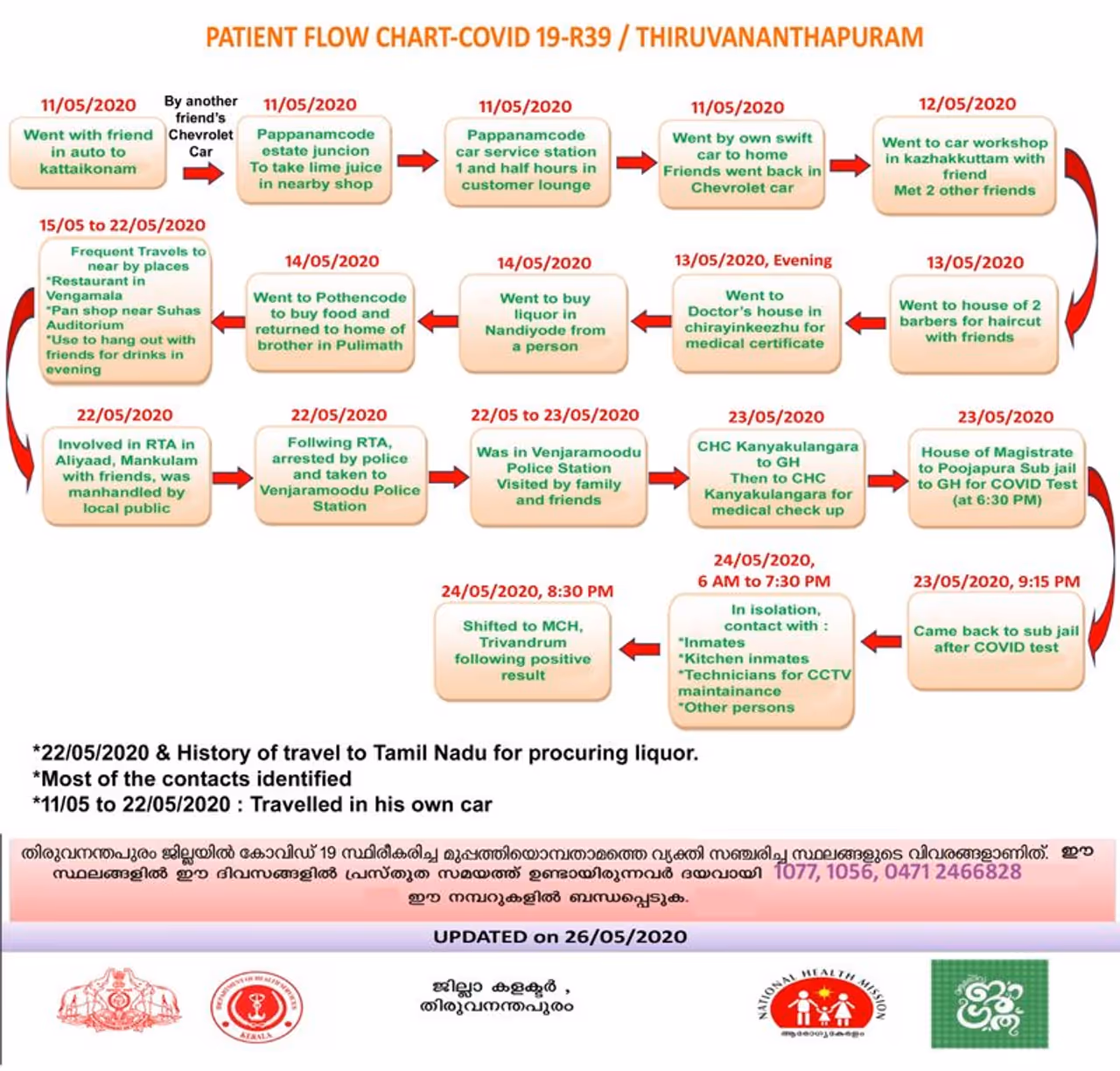 മെയ് 11 മുതൽ 24 വരെ ഇയാൾ സഞ്ചരിച്ചതിന്റെ റൂട്ട് മാപ്പാണ് പുറത്തുവിട്ടത്.