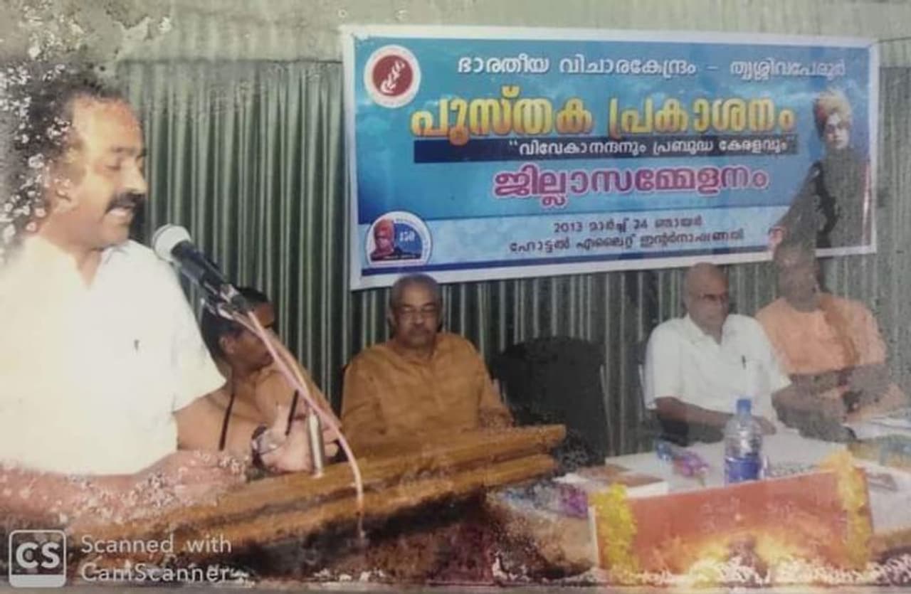 2013 മാർച്ച് 24ന് തൃശൂർ എലൈറ്റ് ഇൻ്റർനാഷണലിൽ വെച്ചു നടന്ന പ്രൗഢമായ ഒരു ചടങ്ങ്. സംഘാടകർ വൈചാരിക രംഗത്ത് പ്രവർത്തിക്കുന്ന RSS ൻ്റെ അനുബന്ധ പ്രസ്ഥാനമായ പ്രജ്ഞാ പ്രവാഹിൻ്റെ കേരള ഘടകമായ ഭാരതീയ വിചാരകേന്ദ്രം, തൃശൂർ ജില്ലാ കമ്മറ്റി. (അന്ന് ഞാൻ വിചാരകേന്ദ്രം ജില്ലാ സെക്രട്ടറി എന്ന ചുമതലയിലായിരുന്നു). RSS ൻ്റെ വരിഷ്ഠ പ്രചാരകനും ഹിന്ദുത്വ ദേശീയാദർശങ്ങളുടെ ഉജ്വല വക്താവുമായിരുന്ന സ്വർഗീയ പരമേശ്വർജി സമ്പാദനം നിർവഹിച്ച 'സ്വാമി വിവേകാനന്ദനും പ്രബുദ്ധ കേരളവും' എന്ന ഗ്രന്ഥത്തിൻ്റെ പ്രകാശനച്ചടങ്ങായിരുന്നു അത്. വിചാര കേന്ദ്രത്തിൻ്റെ ജില്ലാ സമ്മേളനവും. ചടങ്ങിൽ സംബന്ധിച്ച വിശിഷ്ടാതിഥികളിൽ പ്രഥമഗണനീയൻ അന്ന് MLA മാത്രമായിരുന്ന ശ്രീ വി.ഡി.സതീശനായിരുന്നു. RSS പ്രചാരകനായ ശ്രീ ജെ.നന്ദകുമാർ, അന്നത്തെ വിചാരകേന്ദ്രം സംഘടനാ കാര്യദർശി RSS പ്രചാരകൻ ശ്രീ കാ ഭാ സുരേന്ദ്രൻ, സാഹിത്യ സാംസ്കാരിക ആത്മീയ രംഗത്തെ പ്രമുഖരായ സ്വാമി സദ്ഭവാനന്ദജി, ശ്രീ ആഷാ മേനോൻ, ഡോ. ലക്ഷ്മീകുമാരി, ഡോ. സുവർണ നാലപ്പാട്ട്, വിചാര കേന്ദ്രം സംസ്ഥാന പ്രസിഡണ്ട് ഡോ. എം.മോഹൻദാസ് തുടങ്ങിയവരൊക്കെ വേദിയിലുണ്ടായിരുന്നു. ചടങ്ങ് ഉദ്ഘാടനം ചെയ്ത ഇന്നത്തെ നമ്മുടെ പ്രതിപക്ഷ നേതാവ് ഇരുപത് മിനിറ്റോളം നീണ്ട തൻ്റെ പ്രസംഗത്തിനിടയിൽ വിചാര കേന്ദ്രം പ്രതിനിധാനം ചെയ്യുന്ന ഭാരതീയ ദർശനങ്ങളെക്കുറിച്ചും സ്വാമി വിവേകാനന്ദനെക്കുറിച്ചും സാത്വിക പ്രതിഭയായ പരമേശ്വർജിയെക്കുറിച്ചുമൊക്കെ മനോഹരമായി പ്രതിപാദിച്ചു. കൂട്ടത്തിൽ കപട മതേതരത്വത്തെക്കുറിച്ച് ചെറുതായൊന്ന് തോണ്ടാനും മറന്നില്ല. സതീശൻ്റെ ആത്മാവിഷ്ക്കാരമായി പുറത്തു വന്ന വാക്കുകൾ കേട്ട് ഞങ്ങളൊക്കെ ഏറെ സന്തോഷിച്ചു!