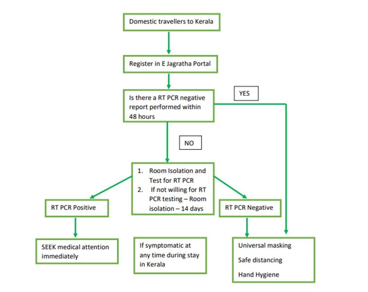 - കേരളത്തിലെത്തിയ ശേഷം ആർടിപിസിആർ ടെസ്റ്റ് നടത്തുന്നവർ അതതിടങ്ങളിൽ റൂം ഐസൊലേഷനിൽ ആയിരിക്കും