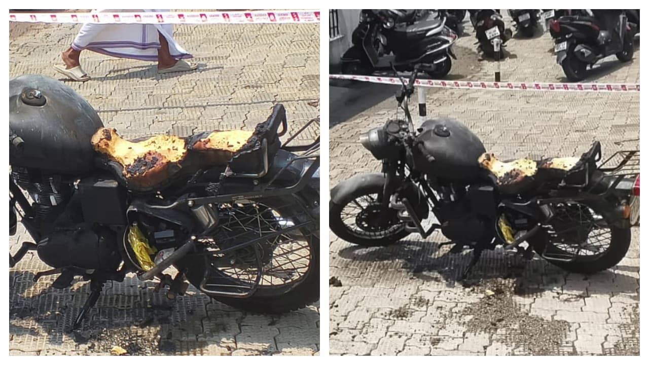 ബൈക്ക് പൂർണമായും കത്തിയിട്ടില്ല. ആശുപത്രിയിലെ സെക്യൂരിറ്റി ജീവനക്കാർ ഉടൻ തന്നെ തീ അണയ്ക്കുകയായിരുന്നു.