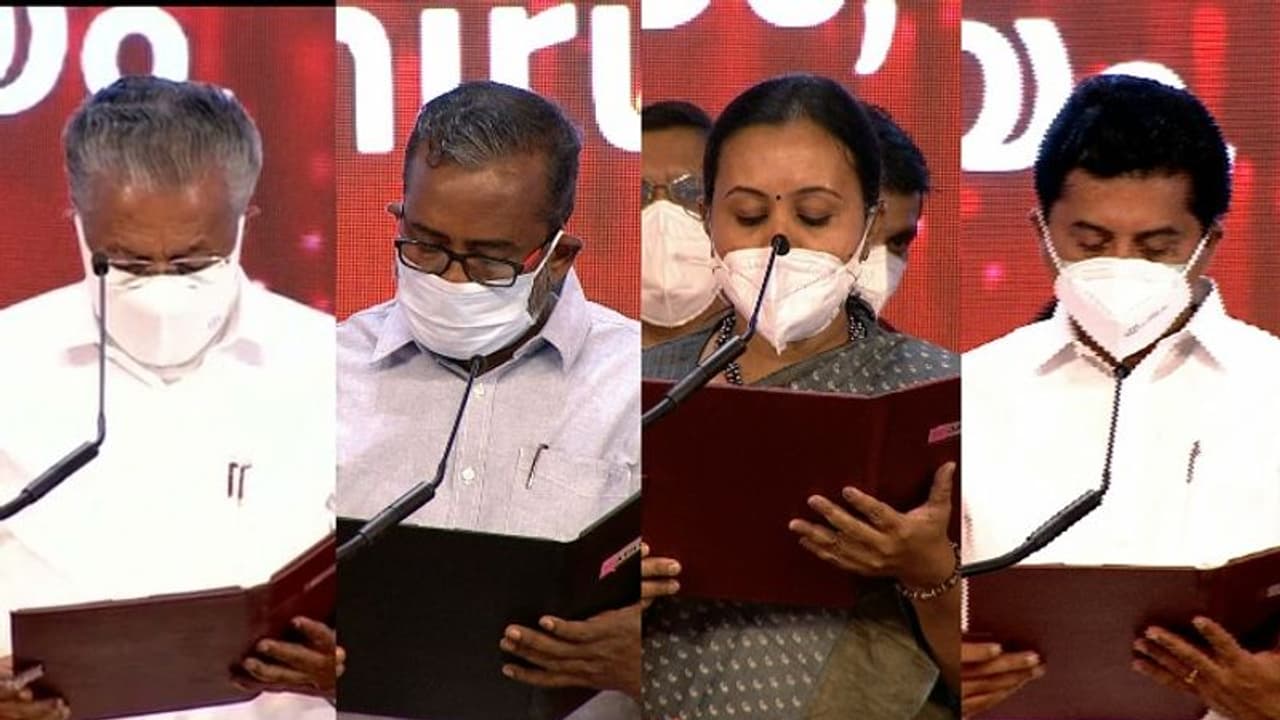 ആദ്യം മുഖ്യമന്ത്രി പിണറായി വിജയനായിരുന്നു സത്യപ്രതിജ്ഞ ചെയ്തത്. സഗൗരവം പ്രതിജ്ഞയെടുത്ത അദ്ദേഹം മുഖ്യമന്ത്രിയായി അധികാരമേറ്റു. തൊട്ടുപിന്നാലെ സിപിഐയിൽ നിന്നുള്ള കെ രാജനും സഗൗരവം സത്യപ്രതിജ്ഞ ചെയ്തു. കേരള കോൺഗ്രസ് എമ്മിന്റെ റോഷി അഗസ്റ്റിനാണ് ദൈവനാമത്തിൽ സത്യപ്രതിജ്ഞ ചെയ്ത ആദ്യത്തെ അംഗം. ജെഡിഎസിന്റെ മന്ത്രി കെ കൃഷ്ണൻകുട്ടിയും ദൈവനാമത്തിൽ പ്രതിജ്ഞ ചൊല്ലി.