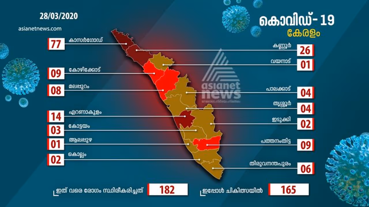 സംസ്ഥാനത്ത് 182 പേർക്കാണ് ഇതുവരെ കൊവിഡ് സ്ഥിരീകരിച്ചത്. നിലവിൽ 165 പേരാണ് സംസ്ഥാനത്ത് ചികിത്സയിലുള്ളത്