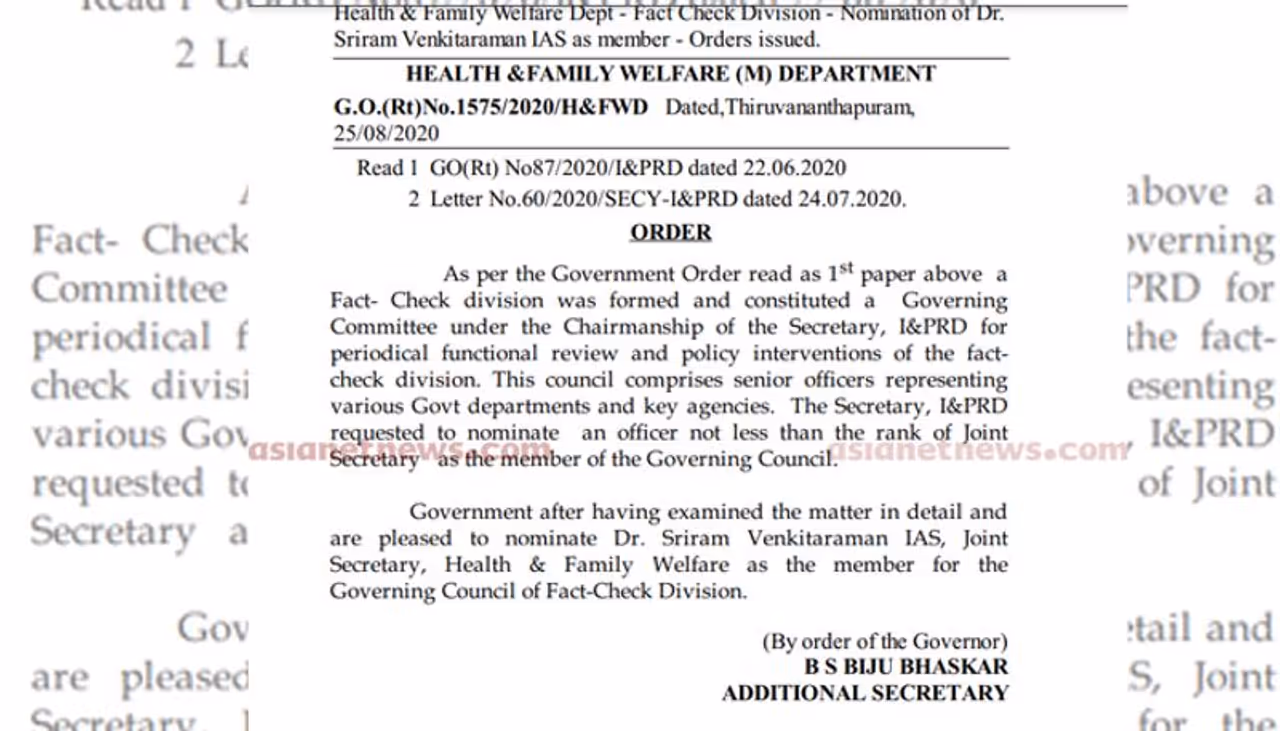 ആരോഗ്യ സംബന്ധമായ വ്യാജ വാര്ത്തകള് കണ്ടെത്തുന്ന സമിതിയിലെ അംഗമായാണ് ശ്രീറാം പ്രവര്ത്തിക്കുക.