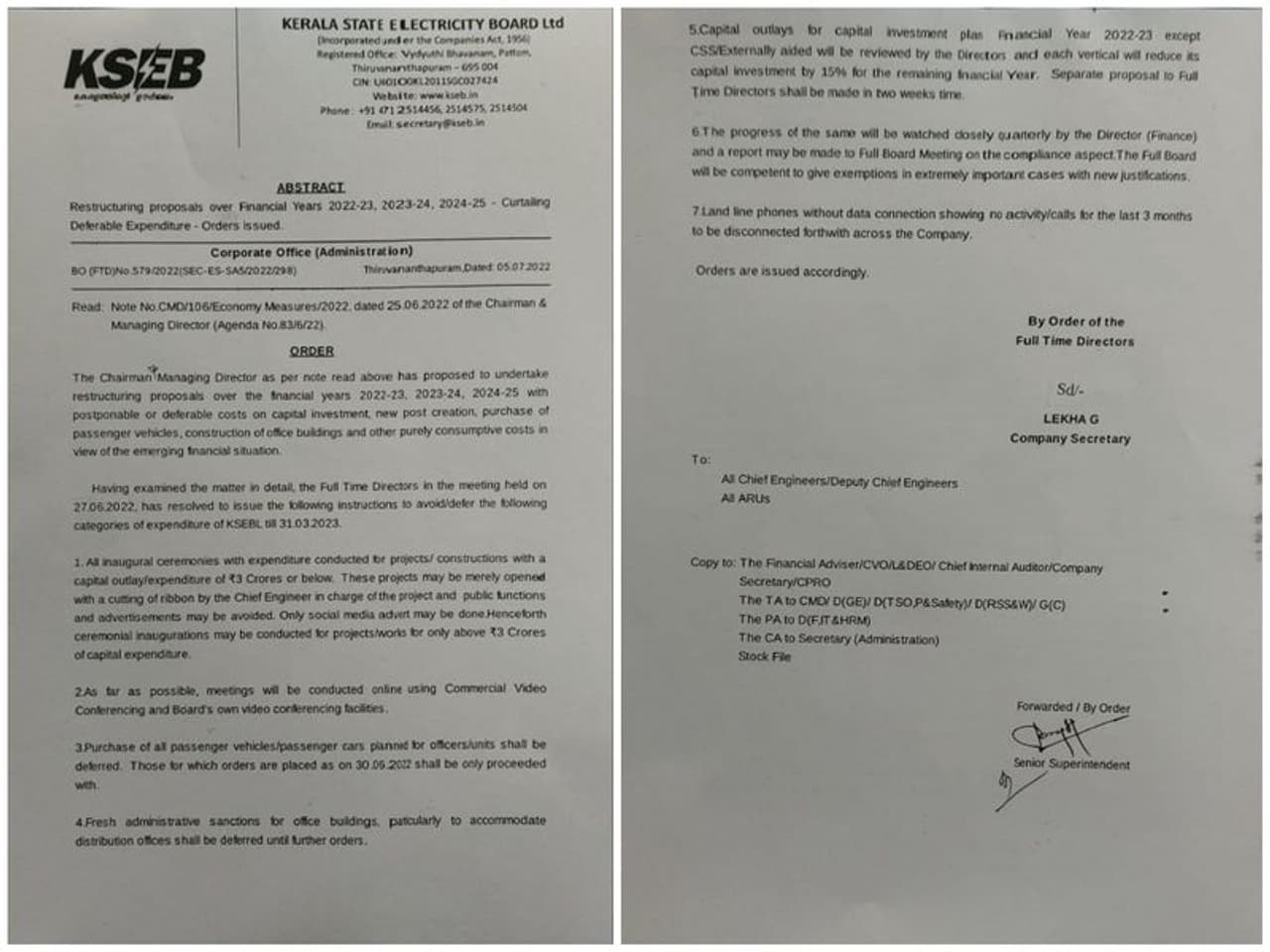 മാത്രമല്ല ആദ്യഘട്ടത്തില് എന്നാണ് അറിയുന്നത്. അങ്ങനെയെങ്കില് ഇത് സംസ്ഥാന വ്യാപകമായി നടപ്പിലാക്കിയേക്കും. അപ്പോള് ഇരുമ്പ് കമ്പി മാറ്റി കേബിളുകളാക്കുക എന്ന ഉത്തരവ് നടപ്പിലാക്കില്ല എന്നാണോ..? ഇതിന് വേണ്ടി ലക്ഷങ്ങള് ചെലവഴിച്ച് പരസ്യം നല്കുമെന്നും ഈ ഉത്തരവില് തന്നെ ഉണ്ട്. കടുത്ത സാമ്പത്തിക പ്രതിസന്ധിക്കിടെയാണ് കെഎസ്ഇബി ലക്ഷങ്ങള് ചെലവഴിക്കുന്നത് എന്നോര്ക്കണം. ഇതെല്ലാം അവസാനം നാളെ കെഎസ്ഇബി ചാര്ജായി നാട്ടുകാരുടെ ചുമലിലേക്ക് തന്നെയാണ് വരിക. മുണ്ട് മുറുക്കി ഉടുത്ത് ചെലവ് കുറക്കാനുള്ള ഉത്തരവ് കെഎസ്ഇബി ഇറക്കി അധികം ദിവസമായില്ല. അതിനിടയിലാണ് ലക്ഷങ്ങള് ചെലവഴിക്കാനുള്ള ഈ വിചിത്ര ഉത്തരവ്.