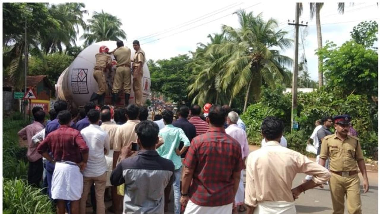 ഫയര് ഫോഴ്സും പൊലീസും സ്ഥലത്തെത്തിയിട്ടുണ്ട്. അപകട സാധ്യത മുന്നിൽ കണ്ട് സമീപത്തു നിന്ന് ആളുകളെ ഒഴിപ്പിക്കുകയാണ്.