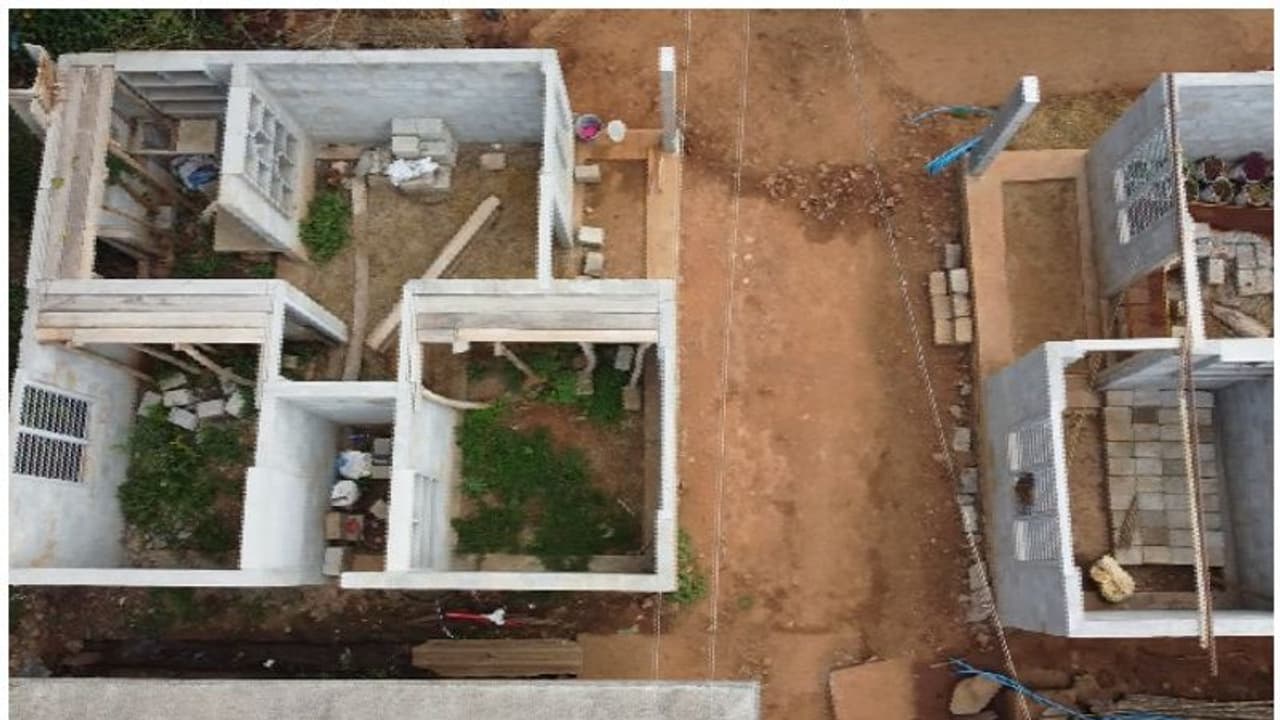 അഞ്ച് മാസങ്ങൾക്ക് മുൻപ് പ്രവൃത്തി തീർത്ത് ഗുണഭോക്താക്കൾക്ക് കൈമാറേണ്ട വീടുകളാണ് തറയിലും പാതിചുമരിലുമൊക്കെയായി കിടക്കുന്നത്.
