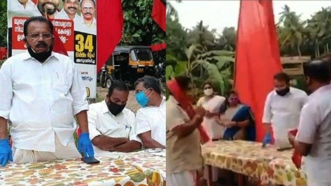 ബിജെപിയിൽ നിന്നും സിപിഎമ്മിലേക്ക് എത്തിയ പ്രവർത്തകരെ സ്വീകരിക്കുന്ന പരിപാടിയിലാണ് മാനദണ്ഡങ്ങൾ ലംഘിച്ചു പ്രവർത്തകർ തടിച്ചു കൂടിയത്. കൊവിഡ് നിയന്ത്രണം പൂർണമായും പൊലീസിനെ ഏല്പിച്ചിട്ടും പോലീസ് നടപടി സ്വീകരിച്ചില്ലെന്നും പരാതി ഉയർന്നിട്ടുണ്ട്.