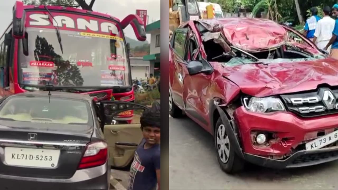 ദേശീയപാതയിൽ പാലക്കാട് തച്ചമ്പാറ ഇടക്കുറുശ്ശി ജങ്ഷനിലായിരുന്നു അപകടം. ബസും കാറും കൂട്ടിയിടിച്ച് കാറിലുണ്ടായിരുന്ന കാഞ്ഞിരപ്പുഴ സ്വദേശി സുരേഷ് ബാബുവിയെ ഗുരുതര പരിക്കുകളോടെ ആശുപത്രിയിൽ പ്രവേശിപ്പിച്ചു. വൈകീട്ട് 5 മണിയോടെയായിരുന്നു അപകടം. കണ്ണൂർ കൊട്ടിയൂരിൽ കാറപകടത്തിൽ ദമ്പതികൾക്കാണ് പരുക്കേറ്റത്. കാർ നിയന്ത്രണം വിട്ട് കൊട്ടിയൂർ പഴയ പഞ്ചായത്ത് ഓഫീസിലേക്ക് ഇടിച്ചുകയറി വയനാട് പുൽപ്പള്ളി സ്വദേശികളായ ടോമി, ഭാര്യ ലൂസി എന്നിവർക്കാണ് പരുക്കേറ്റത്. പേരാവൂരിൽ നിന്ന് പുൽപ്പള്ളിയിലേക്ക് പോകുന്നതിനിടെയാണ് അപകടം ഉണ്ടായത്.