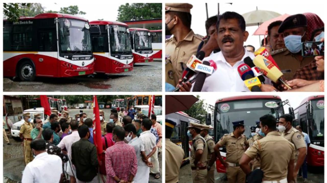കെ എസ് ആർ ടി സിയുടെ (ksrtc) സിറ്റി സർക്കുലർ ഇലക്ട്രിക് ബസ് സർവീസിനെതിരെ (city circular electric bus service) പരസ്യ പ്രതിഷേധവുമായി ഭരണാനുകൂല സംഘടനയായ സി ഐ ടി യു(citu). കെ സ്വിഫ്റ്റ് ബസ് തടഞ്ഞാണ് സി ഐ ടി യു പ്രതിഷേധം. തിരുവനന്തപുരം സിറ്റി ഡിപ്പോയിലാണ് ഭരണാനുകൂല സംഘടനയായ സി ഐ ടി യുവിന്റെ നേതൃത്വത്തിൽ ബസ് തടയുന്നത്. കെ എസ് ആർ ടി സി സ്വിഫ്റ്റ് എടുക്കാൻ വന്ന ഡ്രൈവറെ ഇറക്കാനും ശ്രമം .