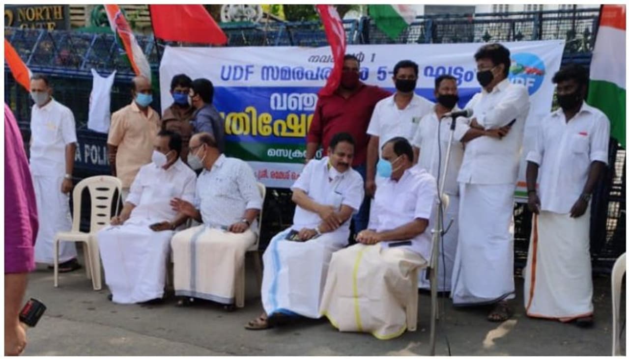 കേരളപ്പിറവി ദിനത്തിൽ സർക്കാരിനെതിര ശക്തമായ സമരപരിപാടികളുമായാണ് പ്രതിപക്ഷം രംഗത്തെത്തിയിട്ടുള്ളത്. മുഖ്യമന്ത്രി രാജിവയ്ക്കണമെന്നാവശ്യപ്പെട്ട് യുഡിഎഫ് സംസ്ഥാന വ്യാപകമായി വഞ്ചനാ ദിനം ആചരിക്കുകയാണ്. ഓരോ വാര്ഡിലും 10 പേര് വീതം പങ്കെടുക്കുന്ന സത്യാഗ്രഹമാണ് നടക്കുന്നത്. സത്യാഗ്രഹത്തിന്റെ സംസ്ഥാനതല ഉദ്ഘാടനം തിരുവനന്തപുരത്ത് സെക്രട്ടേറിയറ്റിനുമുന്നില് പ്രതിപക്ഷനേതാവ് രമേശ് ചെന്നിത്തല നിര്വ്വഹിച്ചു. കെപിസിസി പ്രസിഡന്റ് മുല്ലപ്പള്ളി രാമചന്ദ്രന്, യുഡിഎഫ് കണ്വീനര് എം എം ഹസ്സന്, എന്നിവർ പങ്കെടുത്തു മുന് മുഖ്യമന്ത്രി ഉമ്മന്ചാണ്ടി കോട്ടയത്തും, മുസ്ലീംലീഗ് നേതാവ് പി കെ കുഞ്ഞാലിക്കുട്ടി മലപ്പുറത്തും, കേരളാ കോണ്ഗ്രസ് നേതാവ് പി ജെ ജോസഫ് തൊടുപുഴയിലും, ആണ് സത്യാഗ്രഹത്തിൽ പങ്കെടുത്തത്.