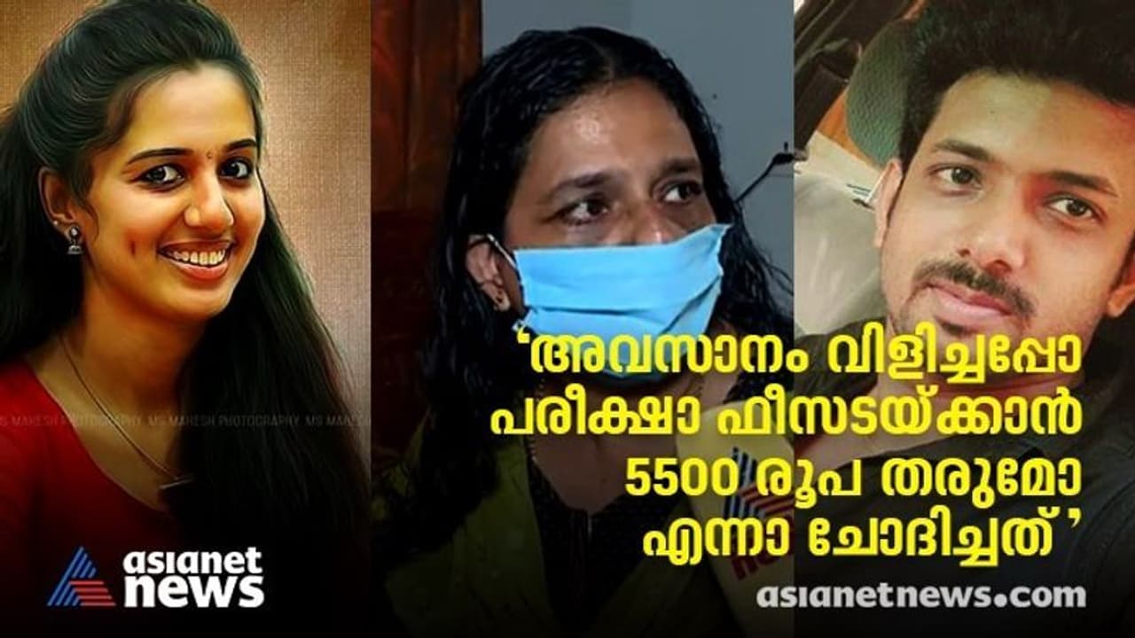 പരീക്ഷാ ഫീസ് അടയ്ക്കാനായി 5500 രൂപ ചോദിച്ചാണ് വിസ്മയ വിളിച്ചതെന്നും കിരൺ പൈസ കൊടുക്കില്ലെന്നത് കൊണ്ടായിരുന്നു ഇതെന്നും അമ്മ പറഞ്ഞു